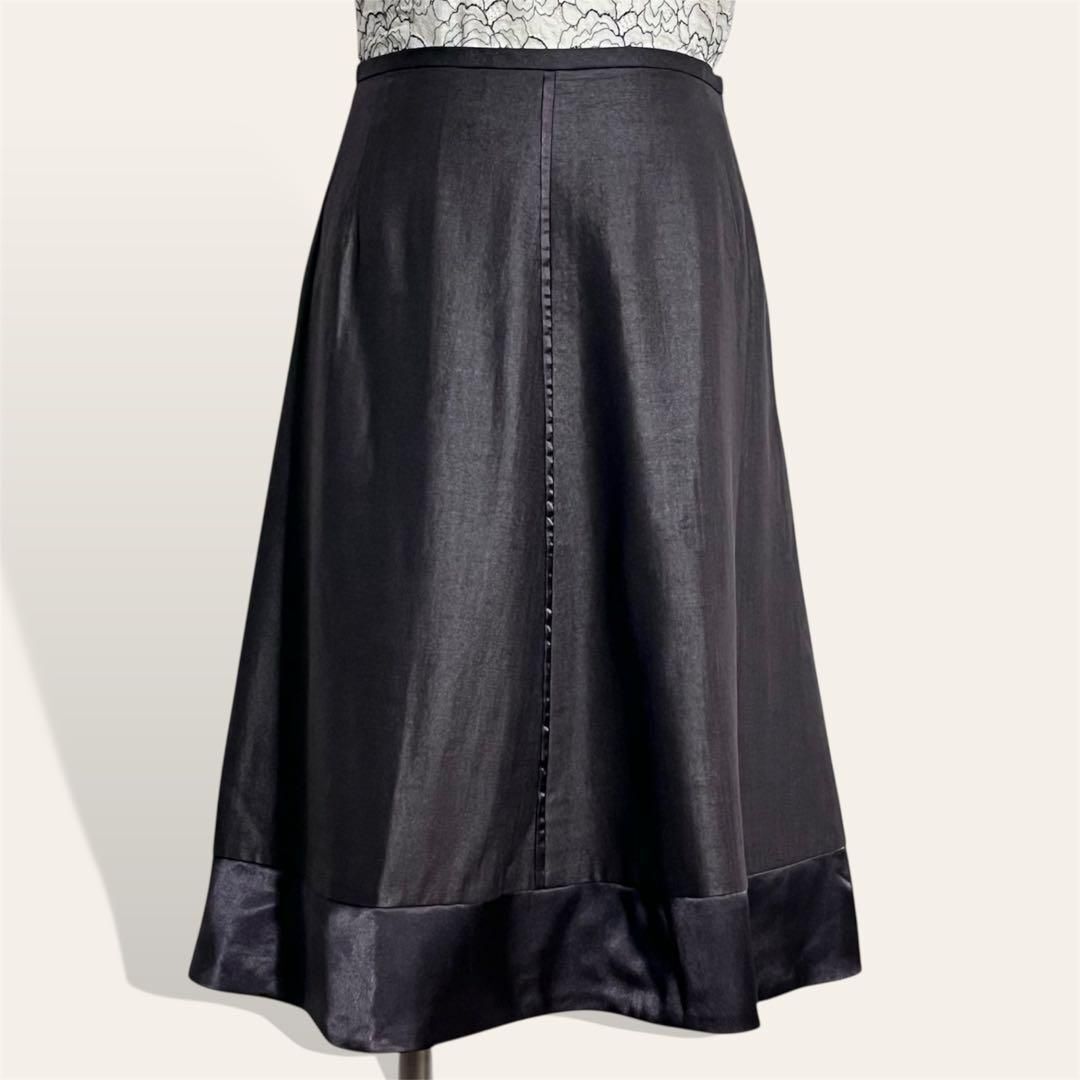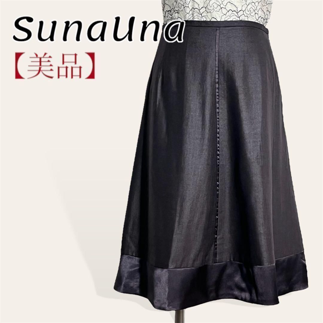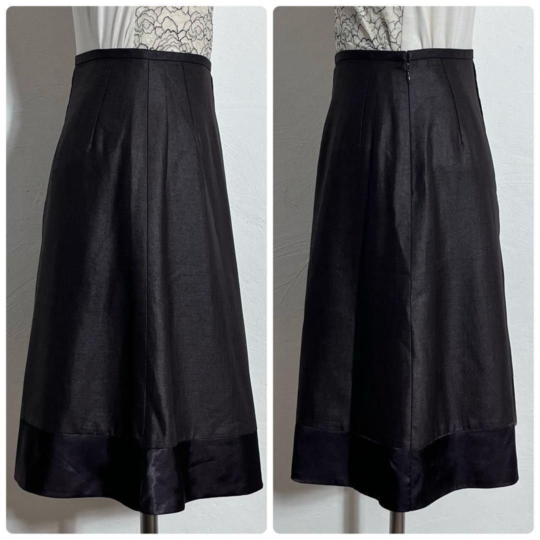 リネン 麻素材風 光沢切替 台形フレアスカート レディース