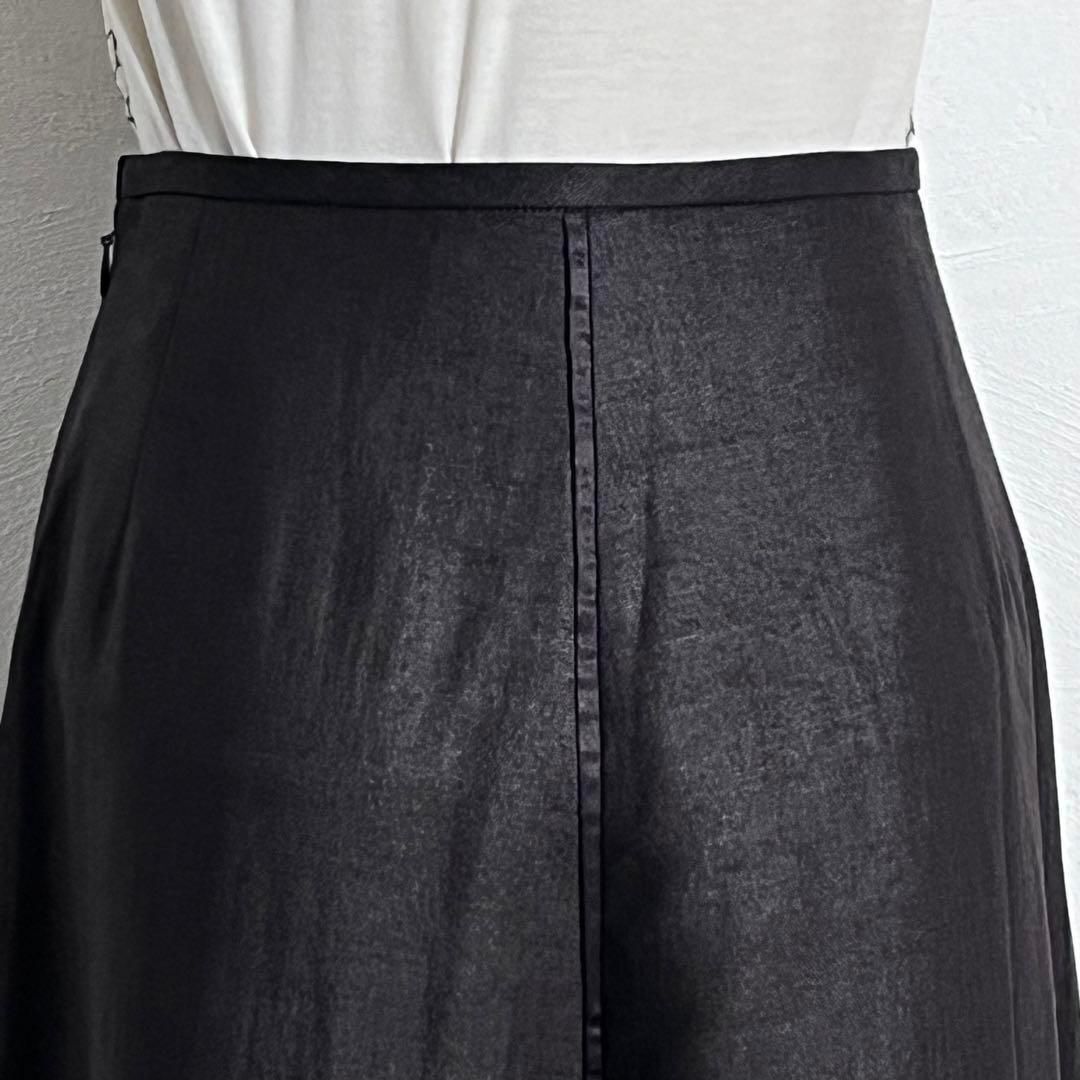 麻素材のような雰囲気のある素材とつるつるのサテン素材の組み合わせが上品で好印象の台形スカートです☆