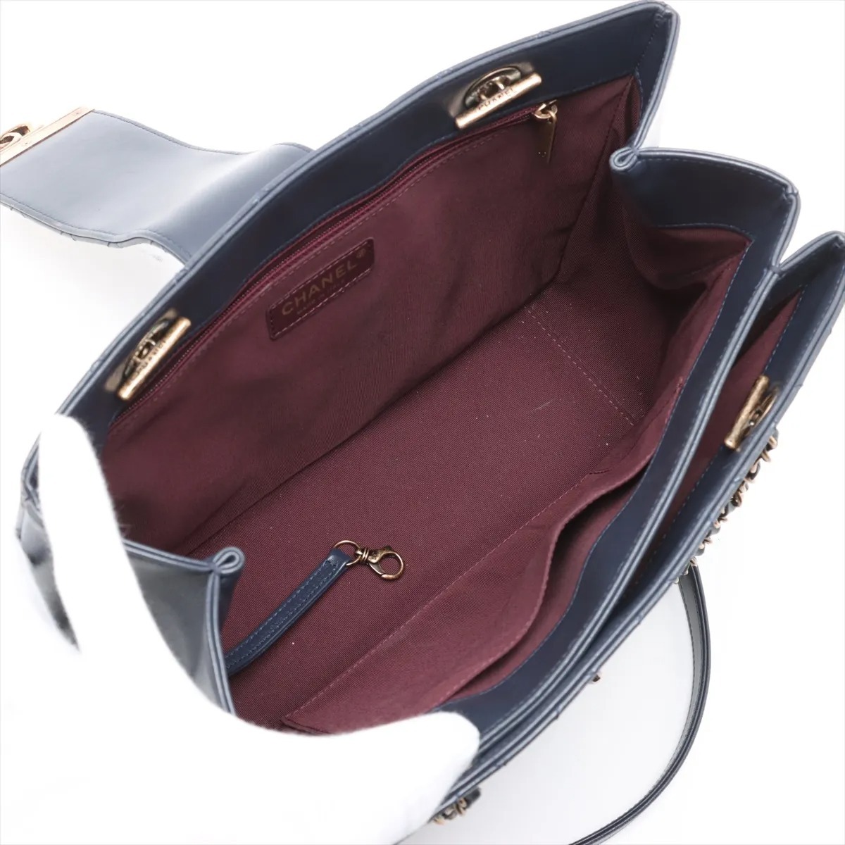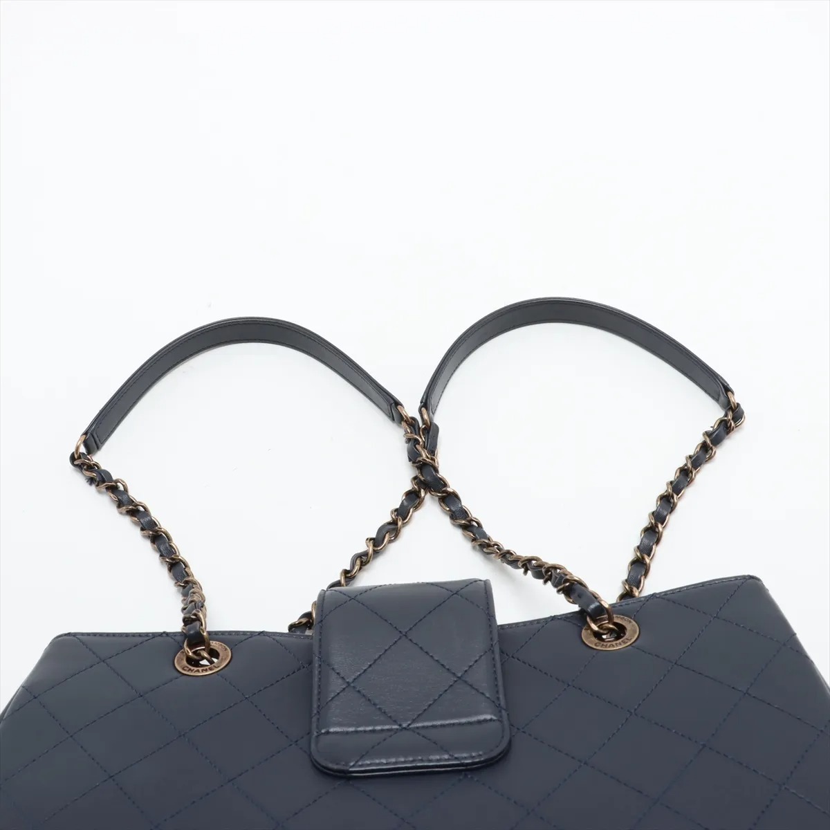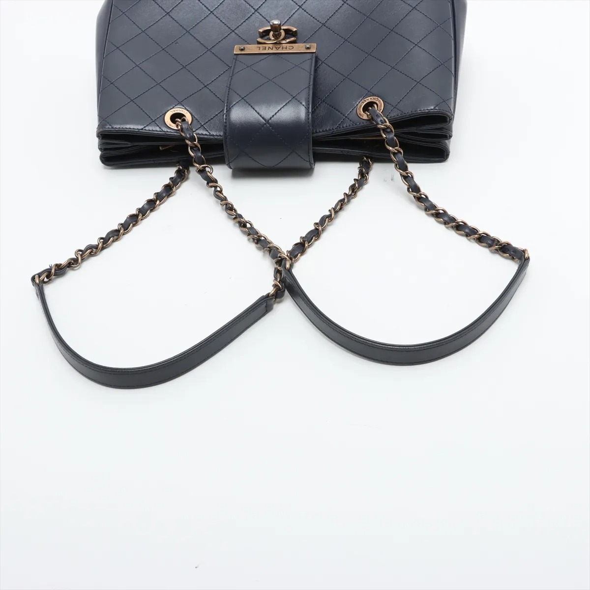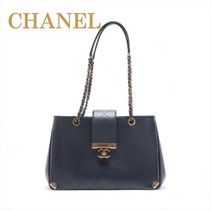 CHANEL シャネル マトラッセ レザー チェーントートバッグ ネイビー ゴールド金具 23297276 23番台