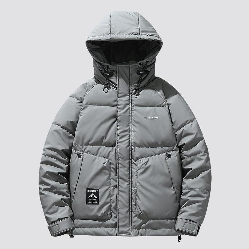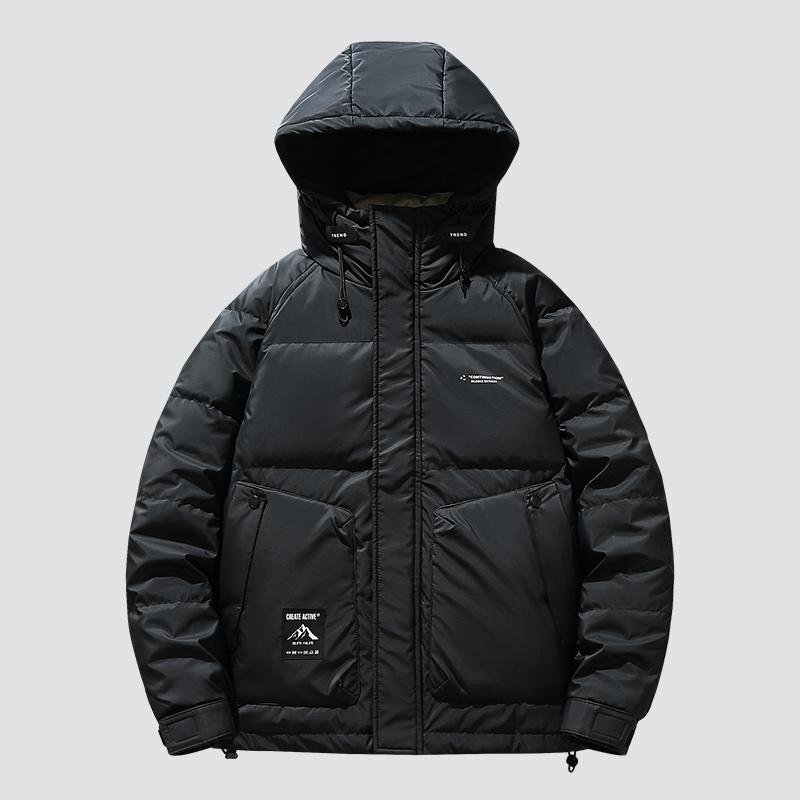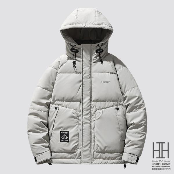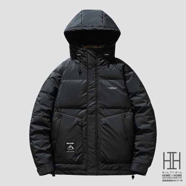 ダウンジャケット メンズ フード付き 暖かい おしゃれ ワンポイント 英文字 防風 防寒 ボリューム感 ダウンコート ブルゾン 通学 カジュアル キレイめ