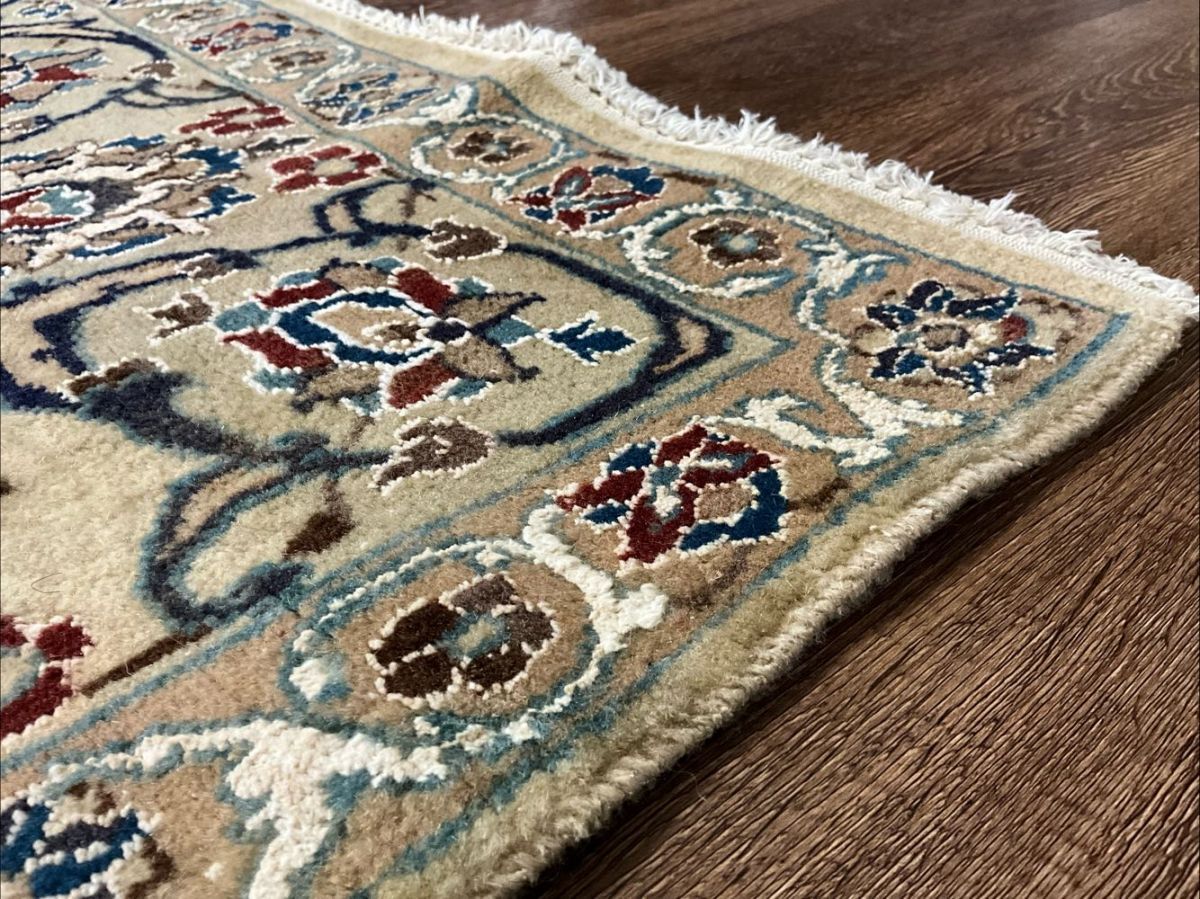 ・手織り絨毯の場合、汚れ防止の観点から、機械生産品に見られる油抜きを行っていないため、ウール特有の匂いがあることがございます。