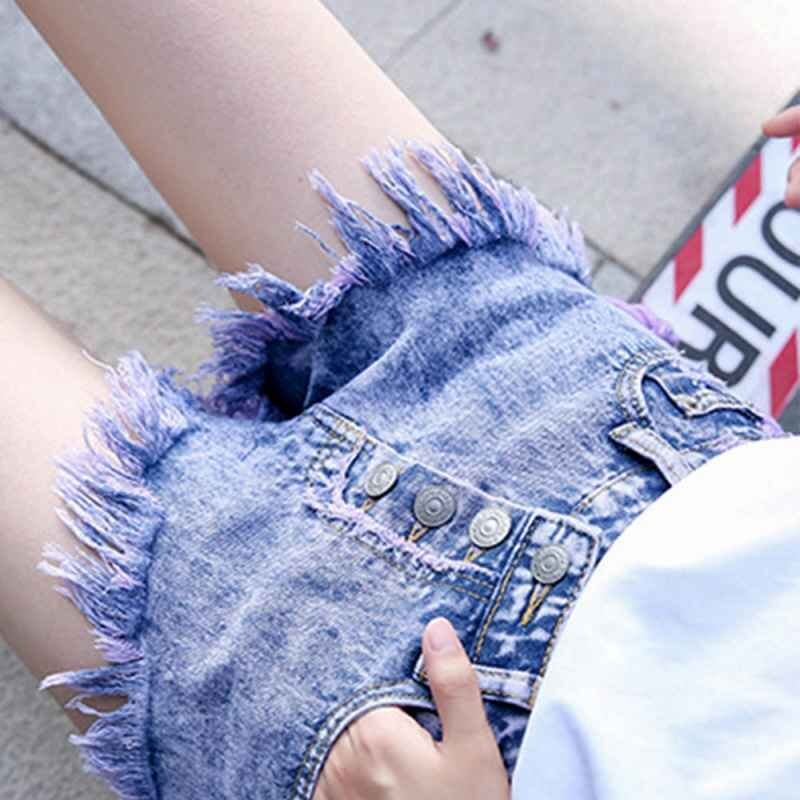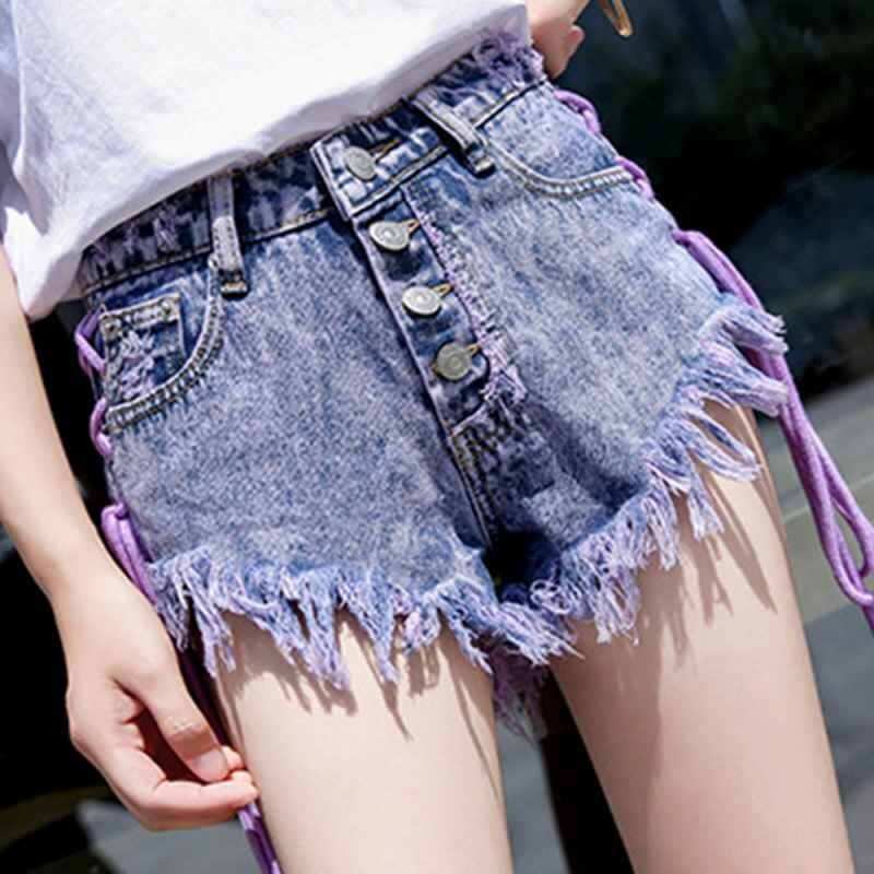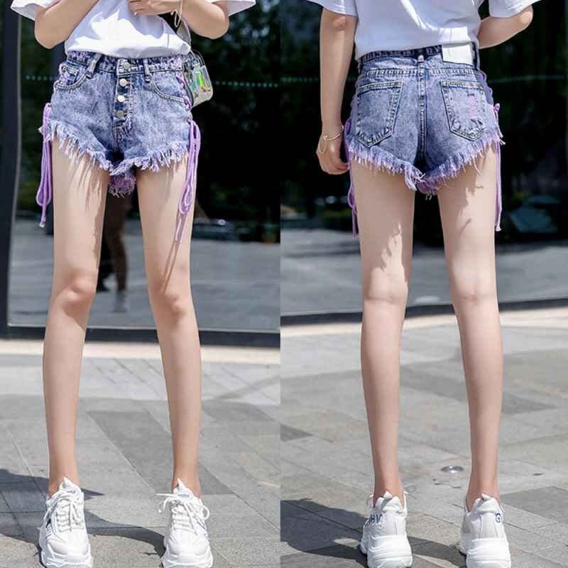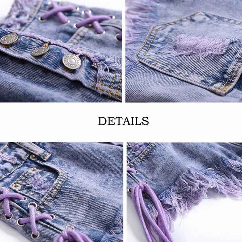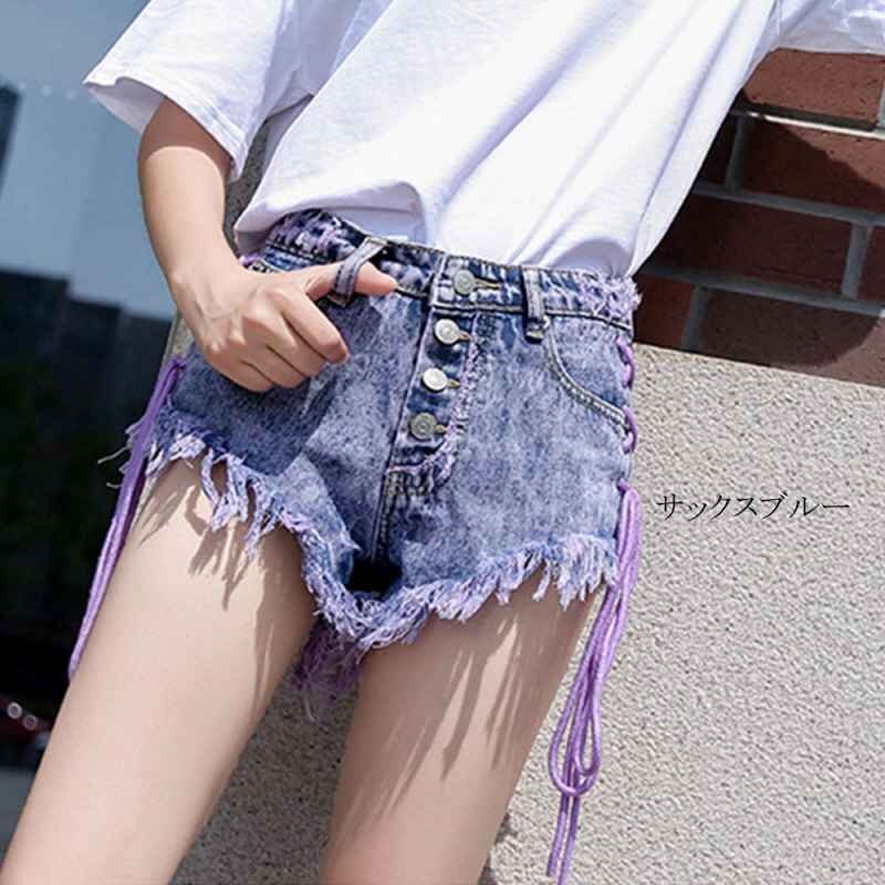 ダメージ デニム ショートパンツ レースアップ ジーンズ クラッシュ 美脚 S サックスブルー