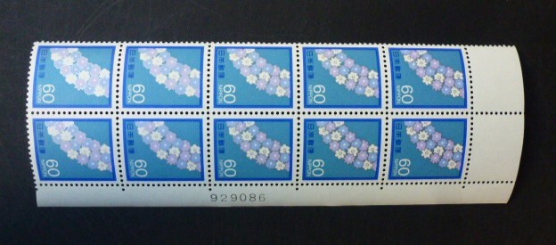 60円 花輪      計数番号6桁    10枚ブロック    未使用        完美品 。