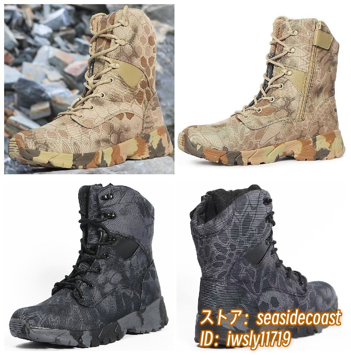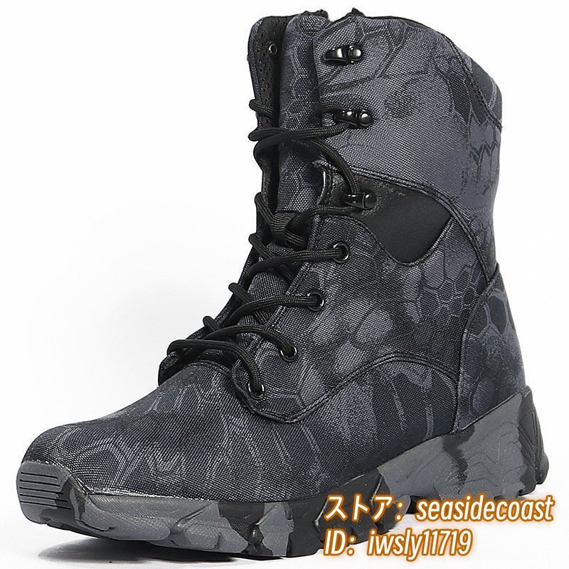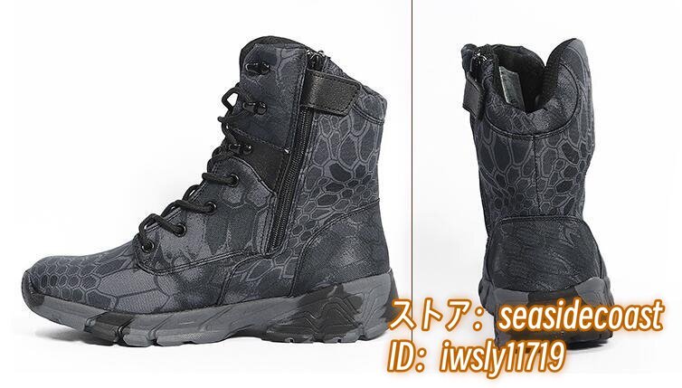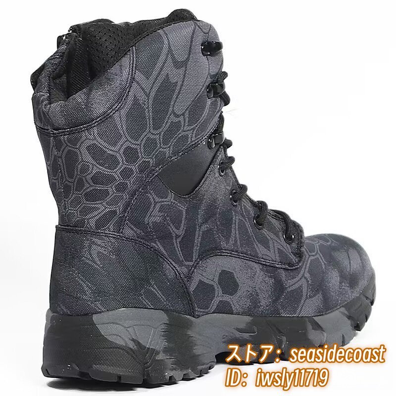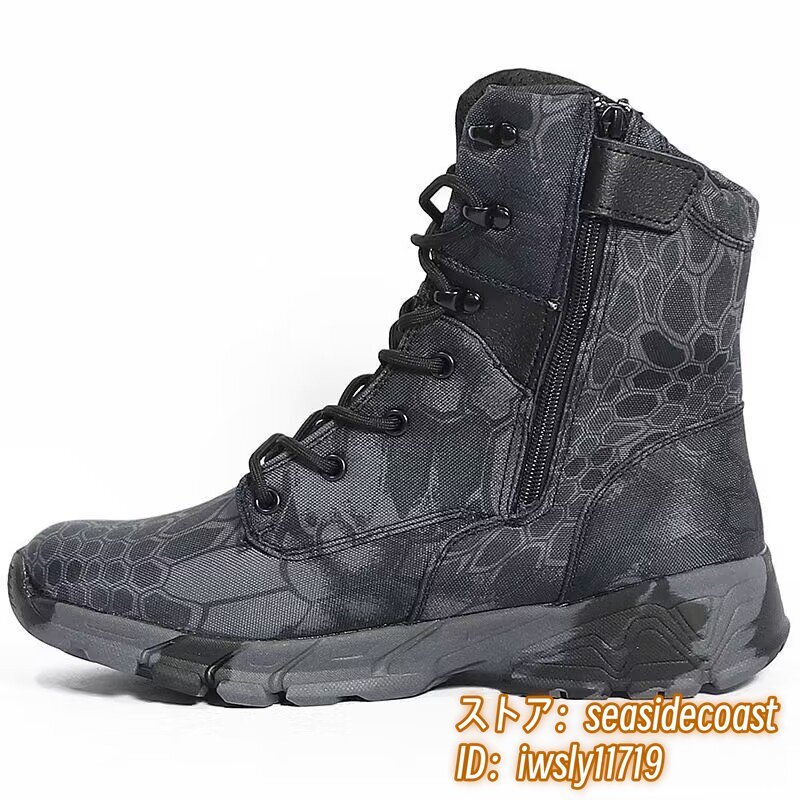新品 アウトドアシューズ 作業靴 ミリタリー 迷彩柄 タクティカルブーツ蛇紋 メンズ 登山靴 トレッキング 防滑 バイクブーツ 黒 28.0cm