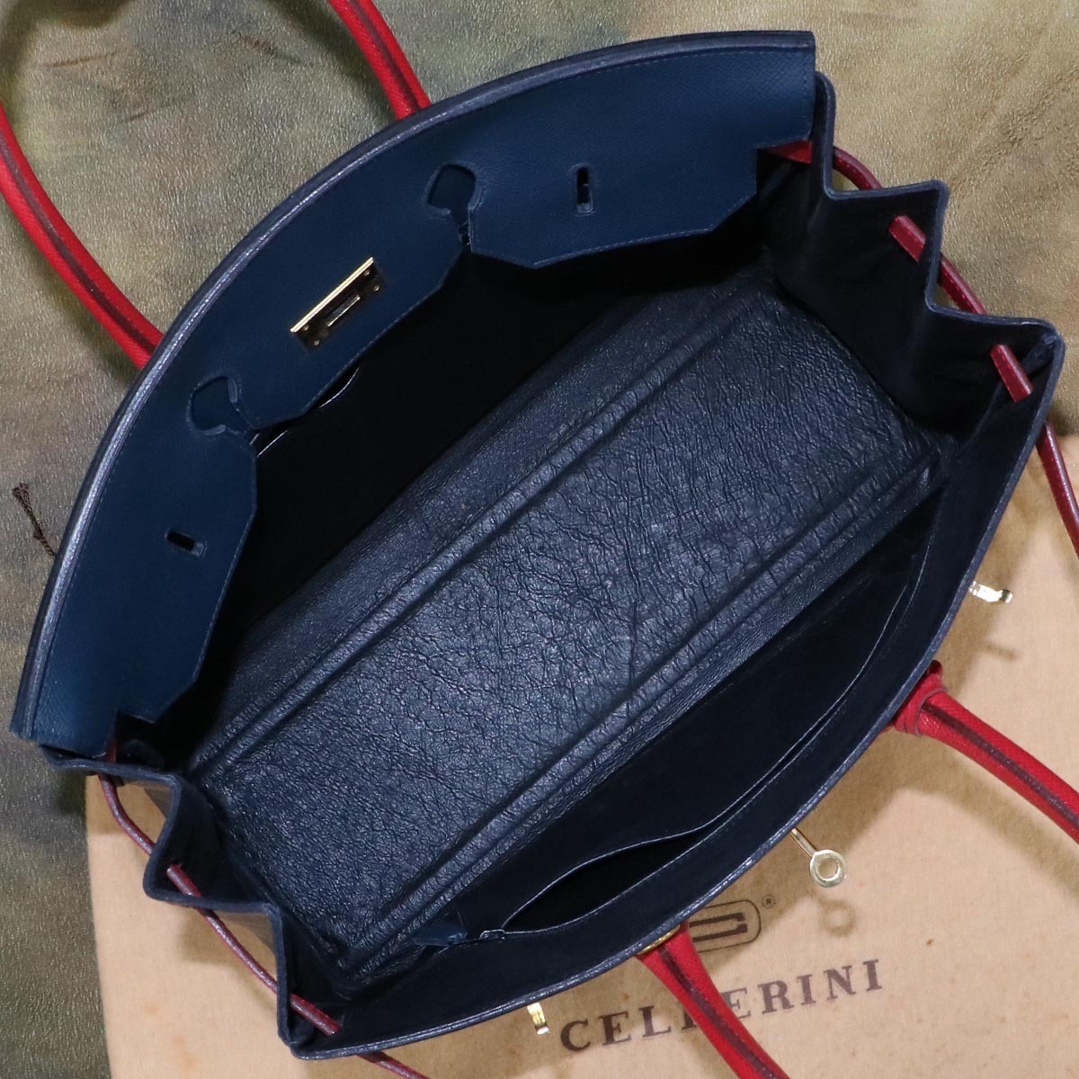 チェレリーニのバイカラー エプソンレザー 2WAYハンドバッグです。 1956年に名匠シルバノ・チェレリーニ氏が設立した老舗革ブランドで、エルメスにも実力を認められた匠。 洗練されたデザイン、卓越した職人技術、選りすぐられた最上級の革、これらに裏打ちされた革製品は、多くの洒落者たちから指示されています。 手持ちスタイルから付属のショルダーストラップで2WAYでお使い頂ける機能的な逸品です。 市場流通量の圧倒的に少ないメゾンのお品なのでお探しの方も非常に多いかと思います。 |