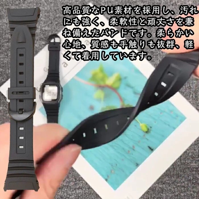 Casio/ G-Shock W-96H対応 交換用バンド カシオ交換用腕時計ベルトバンド PU素材 時計バンド 防水 運動 時計バンド交換ベルト ベルト☆1点