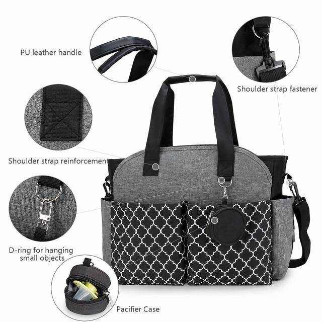マザーズバッグ トート ショルダー 3way リュック 手提げバッグ ナイロン 撥水 軽量 収納 ママ レディース ブラック&グレー