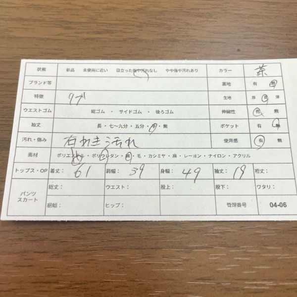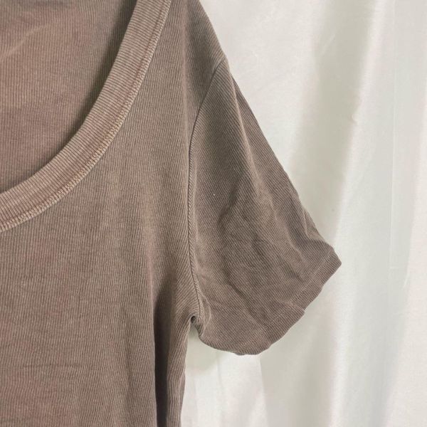 ベーシックな茶色Tシャツ、シンプルコーデに合わせやすい一枚 - ブランド:不明 - サイズ表記:L - 素材:コットン 綿 ポリウレタン - カラー:茶色 - シーズン:春夏 - 服の特徴:シンプルな無地、深めのラウンドネック、ベーシックデザイン - ダメージ・汚れ詳細:右わき汚れあり - 袖の長さ:半袖 管理番号: 04-06 即購入大歓迎・お得な割引各種あります 詳しくはプロフィールをご覧ください! 匿名&送料無料 海外輸入のため全て一点ものです 古着のため使用感・毛玉等があることもあります。写真で状態の確認を行なってからご購入ください おまとめ買いでお得な割引あります♪ 平置き採寸表→写真から確認いただけます! (素人採寸のため、多少の誤差はご了承ください) 商品状態に関しては、写真、商品説明欄に記載しております。着用回数、購入時期などはお答えできませんので、ご了承ください。着画、写真の追加もお断りしております。 簡易包装のコンパクト発送となります。 畳みシワはご了承の程、宜しくお願いいたします。 商品によっては圧縮してお送りするものもございます。 撮影環境や使用するモニター、反映されにくい色味など、 商品と画像に若干の色誤差が生じますことをご了承ください。 出品作業の際にしっかりと確認はしておりますが、シミなどの見落としがある場合もございますのでご了承下さい。 古着の取り扱いになりますので特有の匂い等がある可能性があります。ご理解のある方のみご購入の程お願い致します。