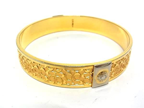 ■美品■ COACH コーチ シグネチャー ブレスレット バングル アクセサリー レディース ゴールド系 DH8984