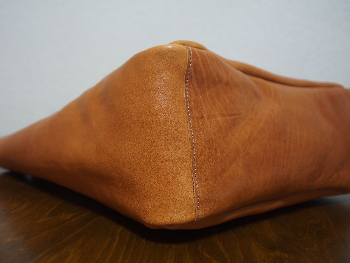 天然タンニン鞣しのプルアップレザーです。物理的な作業によってシワを強調させている特徴な革です。使い込んでいくうちにツヤ・味がでてきます。私たちが知っているかぎりこの革を使用しているところは、数少ないです。