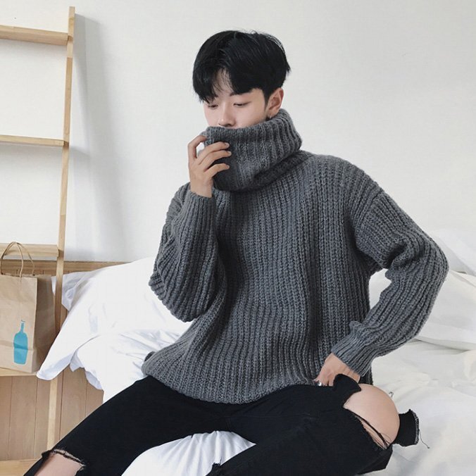 メンズ セーター ハイネック 長袖 トップス ファッション カジュアル タウンユース ダークグレーXL