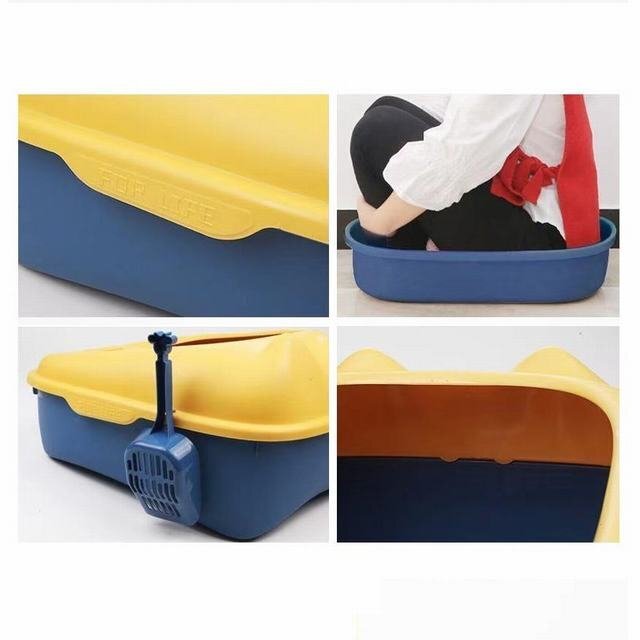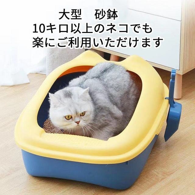 大型ネコ砂鉢です。50キロの大人が入れる大型サイズなので,10キロ以上のネコちゃんとにしても楽にご利用いただけます。出入り口は斜め設計になっておりますので,砂が散らかすことを防止できます。本体は半閉式なので,代謝物の臭みを押さえます。 サイズ:写真をご参照ください。 商品内容:本体+スコップ
