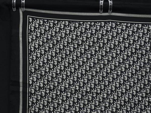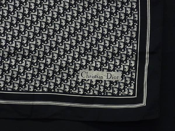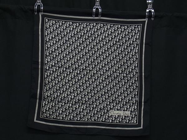 ■美品■ ChristianDior クリスチャンディオール トロッター シルク100% ハンカチーフ ポケットチーフ レディース ブラック系 DK4475