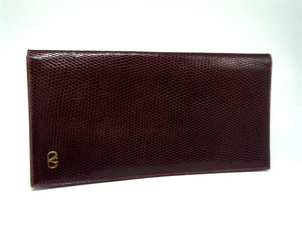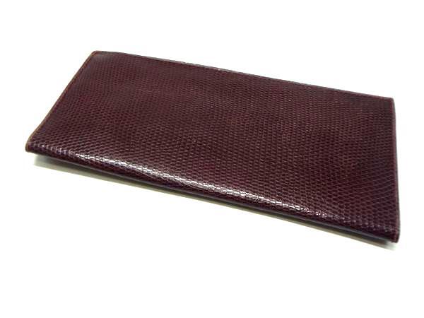■極上■本物■美品■ VALENTINO ヴァレンティノ リザード 二つ折り 長財布 ウォレット 札入れ メンズ ボルドー系 DH0421