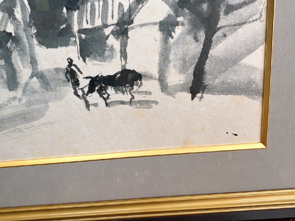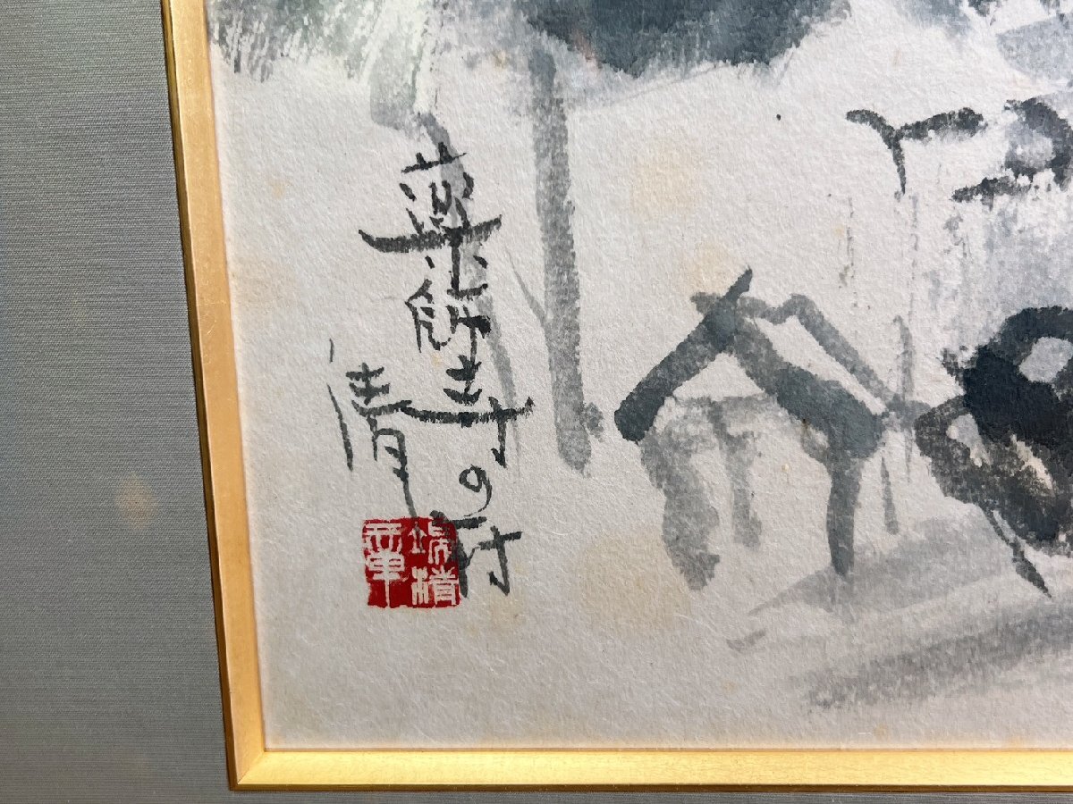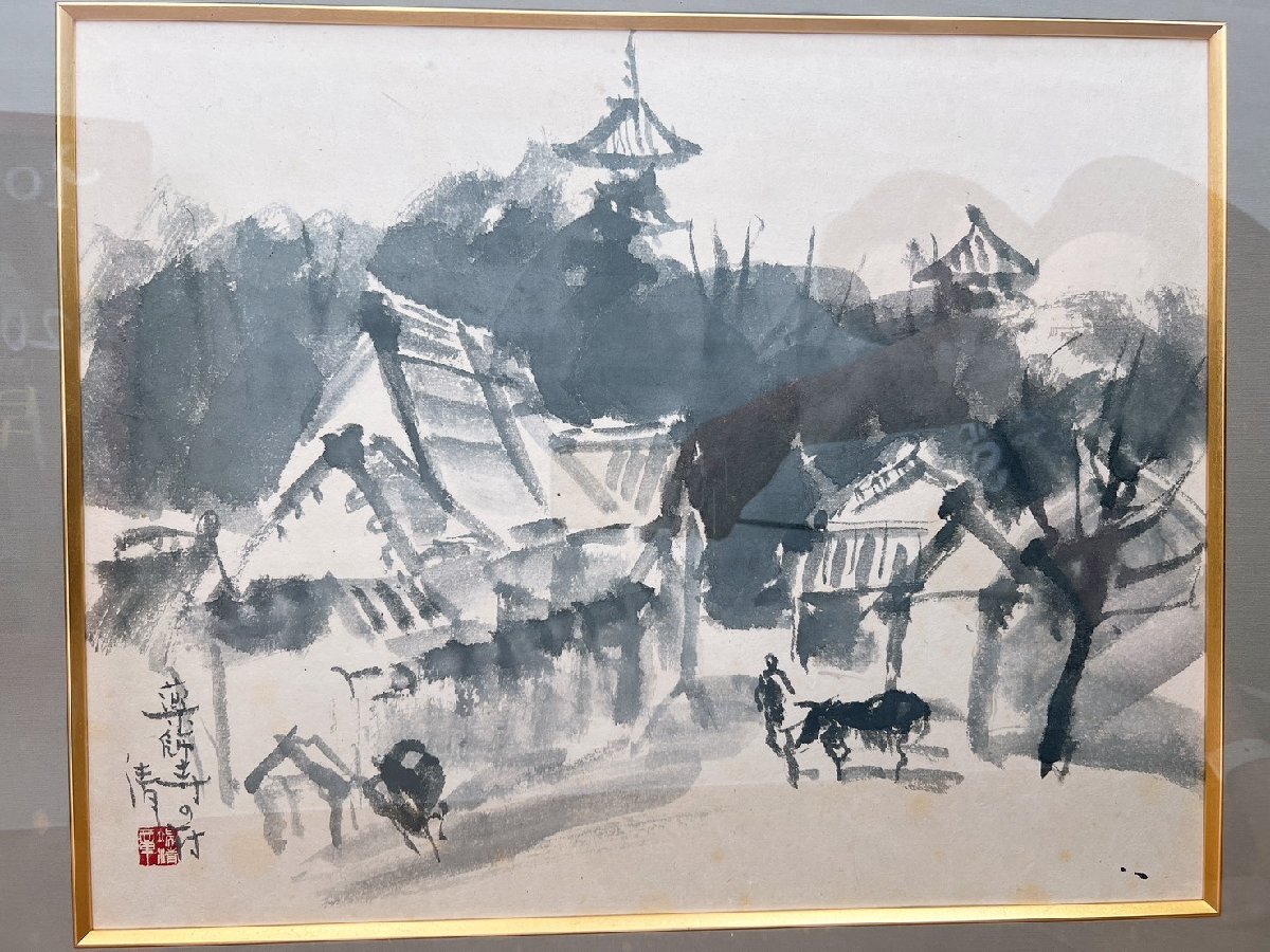 1円 端名 清 作 水墨画 薬師寺の村10F 絵画 額 箱付き 美術品 日展作家 現状保管品【KO017】
