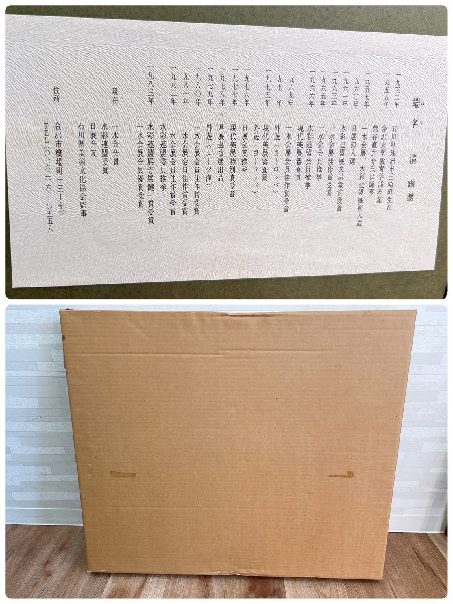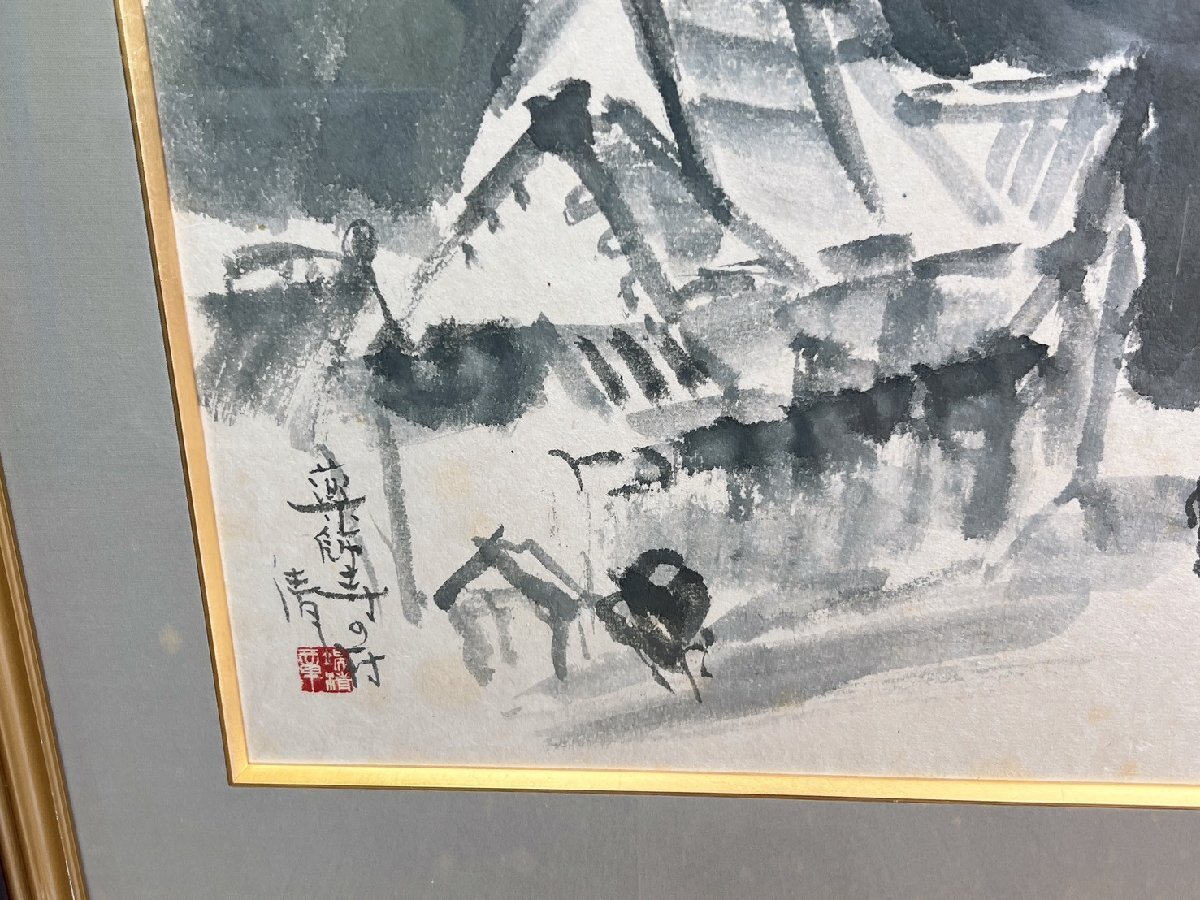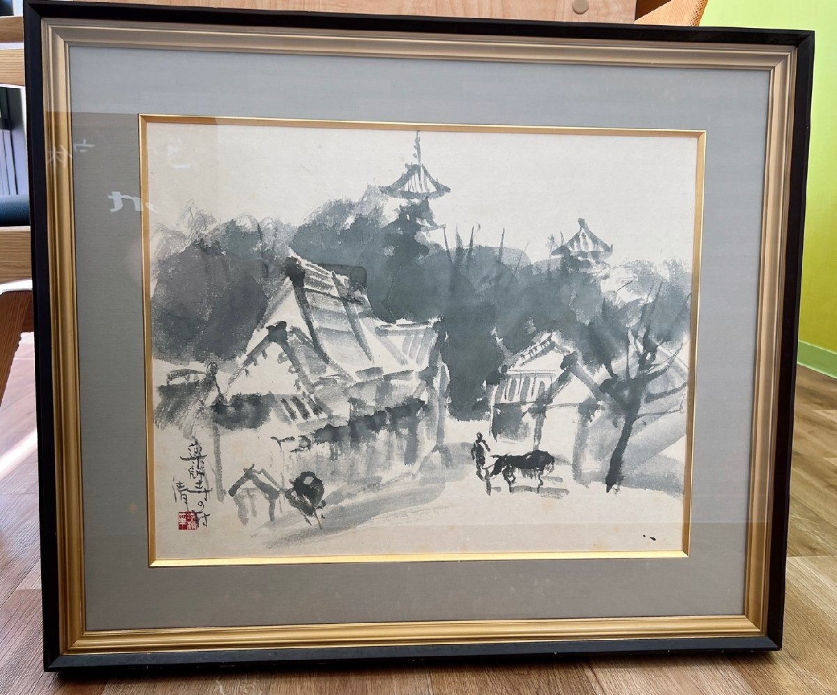 1円 日展作家 端名清 作 水墨画 薬師寺の村10F 絵画 額 箱付き 美術品 現状保管品【KO017】