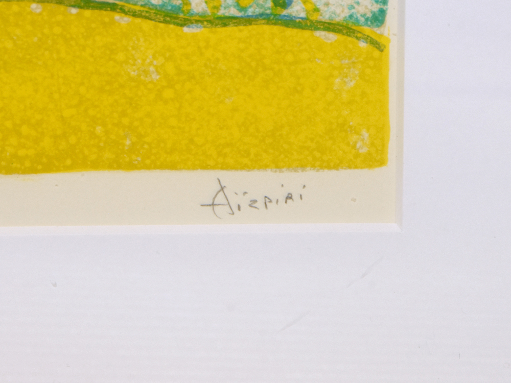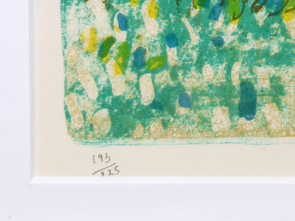【真作】ポール・アイズピリ PAUL AIZPIRI 「カンヌ遠望」です。 アイズピリは鮮やかな色彩が目を惹く作風が特徴で本作も鮮やかな緑や青が印象的で爽やかな作品です。 画面下部に「193/225」「AIZPIRI」直筆サインあり。 表面のアクリル板・白い額増にややスレは見受けられます。 額装に多少スレ、本紙経年によりわずかにヤケ、少々のシミが見られますが、ご鑑賞の妨げにはなることなく作品本体も汚損等はございません。 ※予めご了承の上ご入札お待ちしております。 ※撮影の際に生じた写り込みなどがございます。 ご理解の程よろしくお願い致します。 |