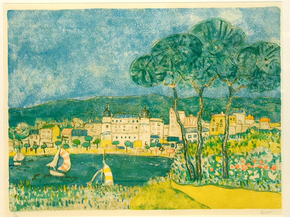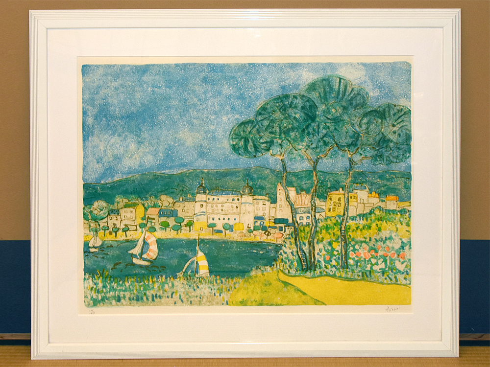 【真作】ポール・アイズピリ PAUL AIZPIRI「カンヌ遠望」 大型リトグラフ 風景画 限定225部の内193部 絵画 直筆サイン |