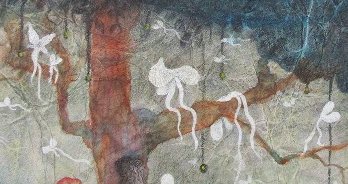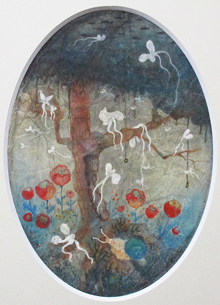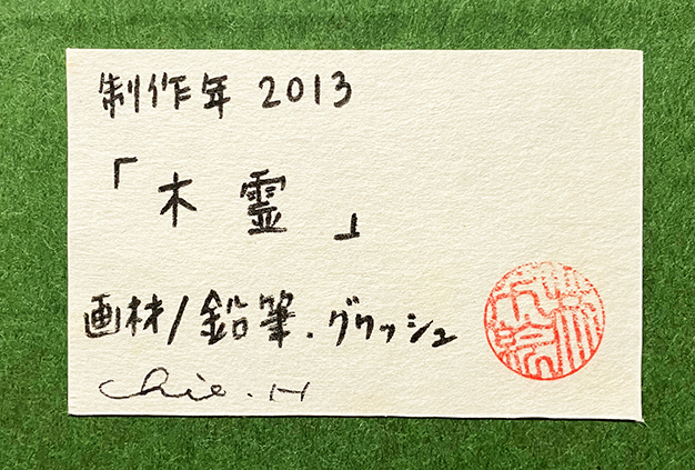 林千絵『木霊』鉛筆、ガッシュ、紙 サイン 、裏書き有 額、箱付き 2013年制作 額裏にシール