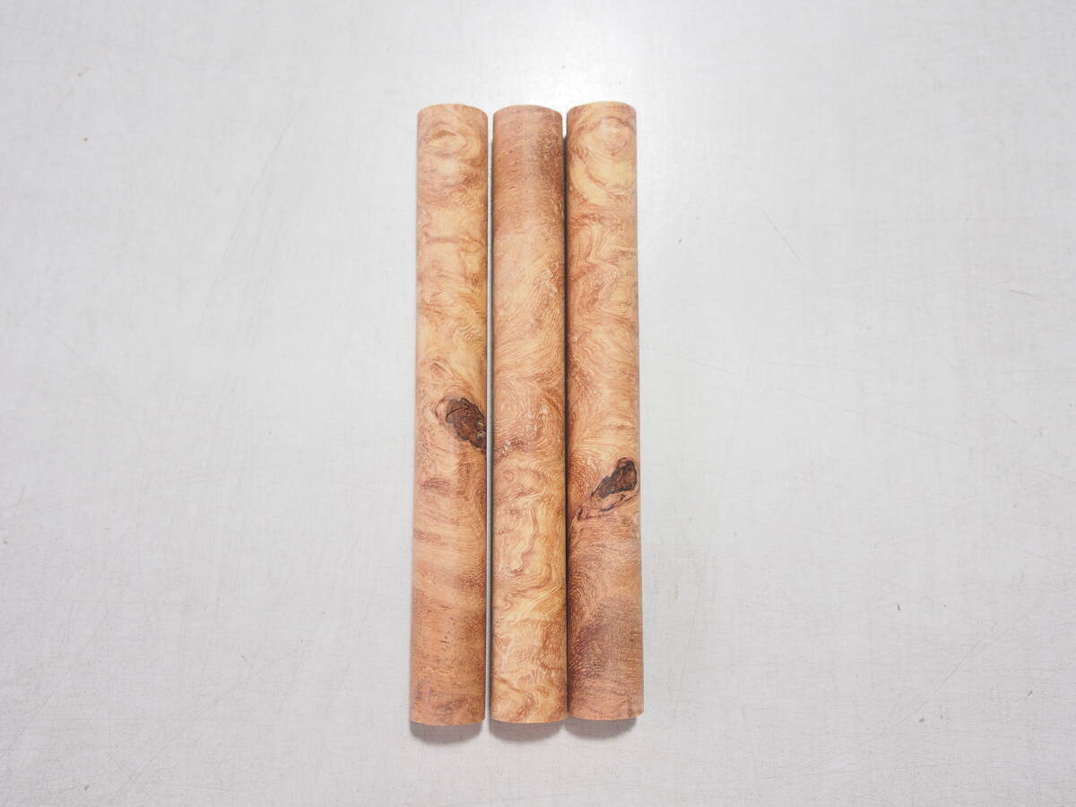 カリンの丸棒 綺麗 杢目 3本 No.2 14×123ミリ