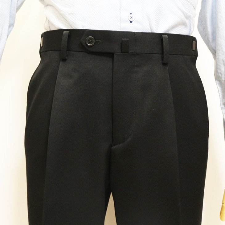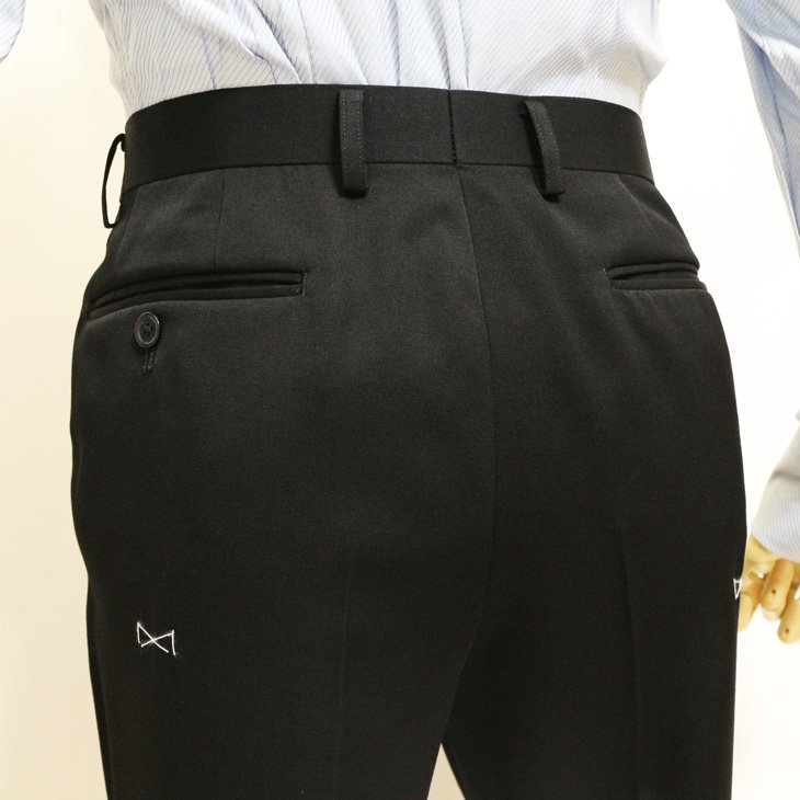 デザイン | 2つボタンシングル、センターベント、ワンタックちょっとローライズパンツ ウエスト前後6cm調整可能なアジャスター(べレックスα)付き |