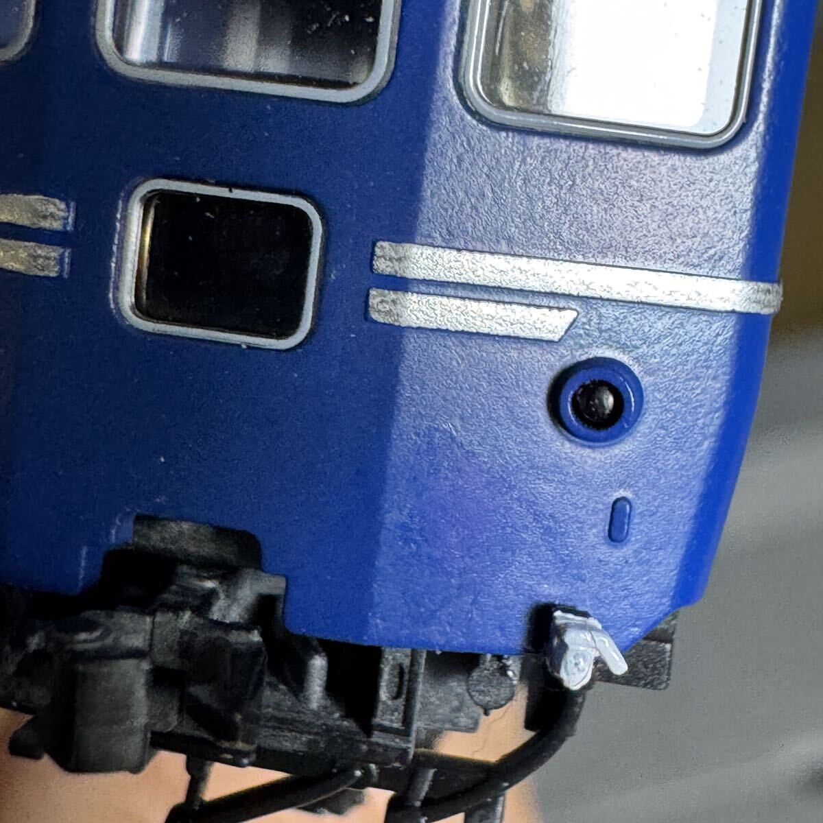・前面のトレインマーク周りの白枠を削除(青20号をエアブラシで吹き付け)