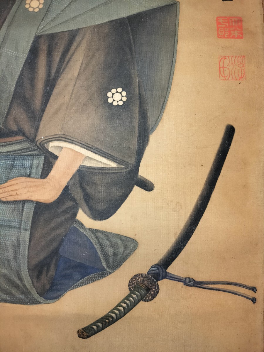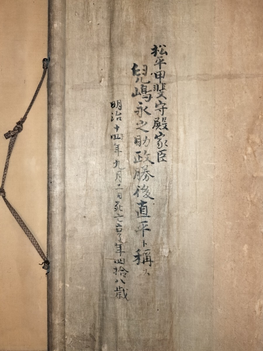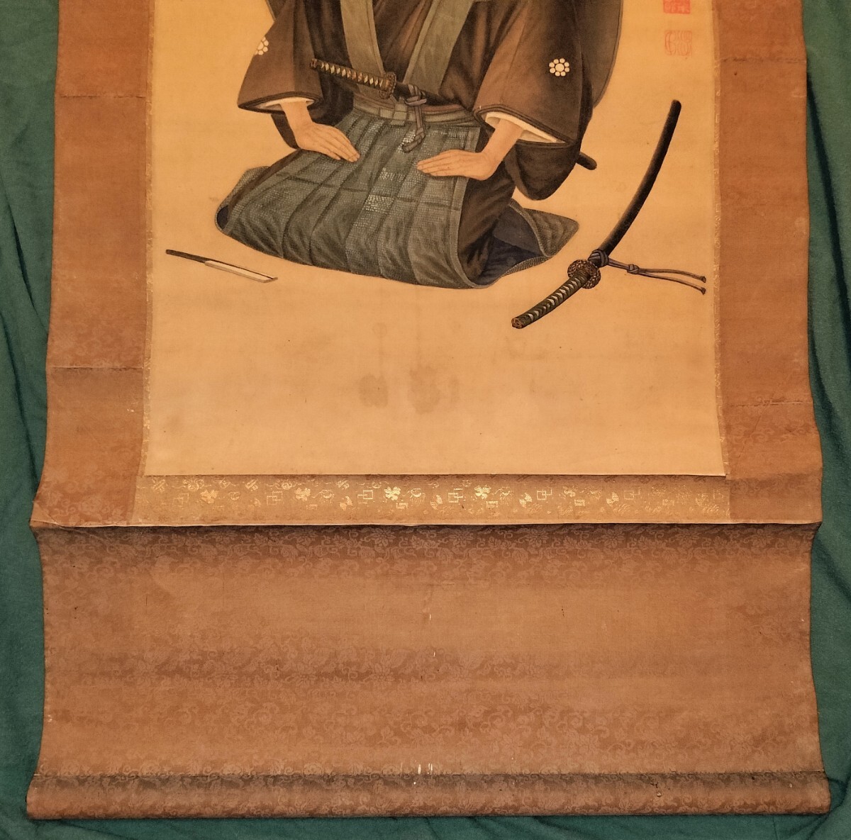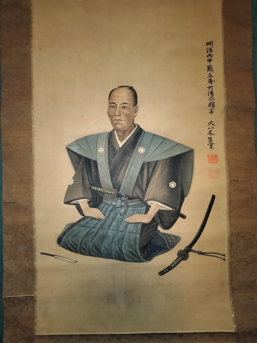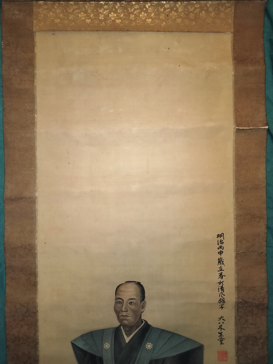 ヤケ、シミ、少シワ、少オレ、汚れがあります。両軸先欠です。軸裏面に覚書「松平甲斐守殿家臣 云々」とあり。画像にてご確認ください。