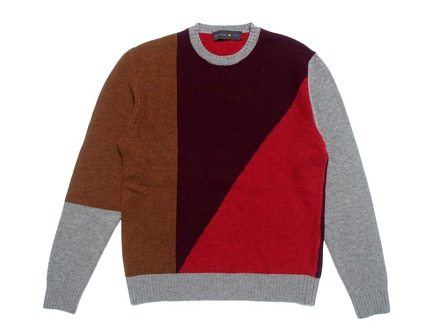 極美品 ETRO エトロ カラーブロック クルーネック ニット セーター ミドルゲージ ウール マルチカラー メンズ S