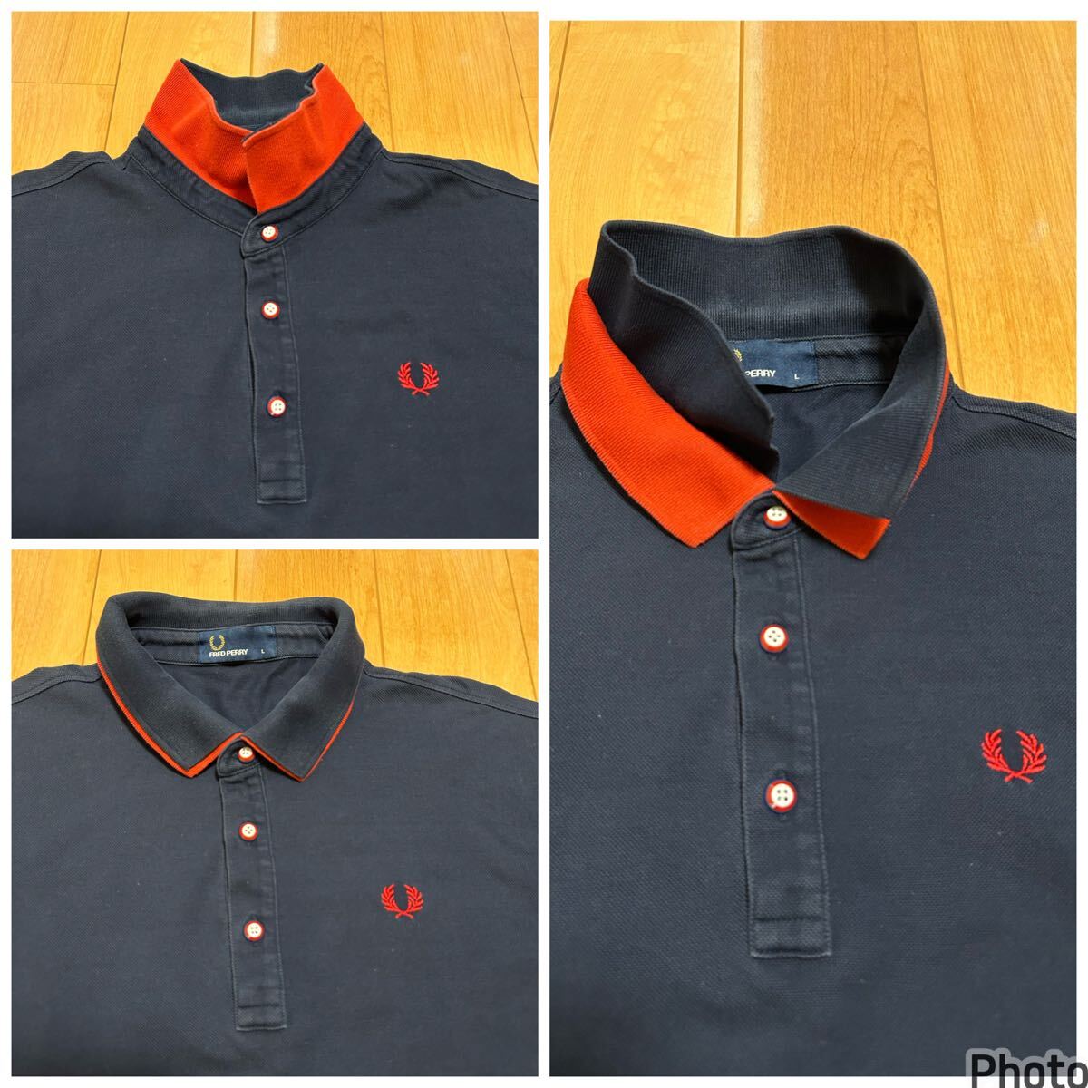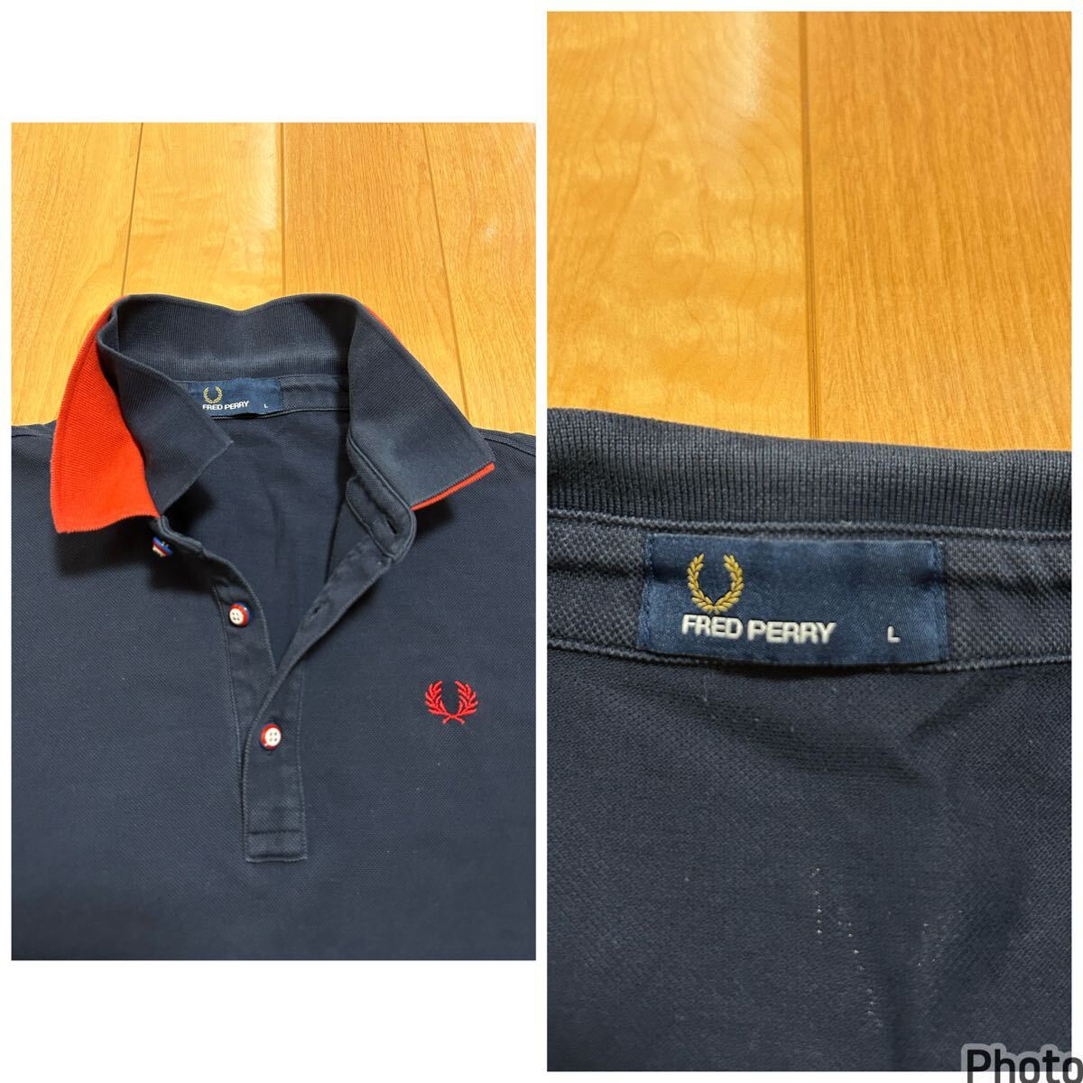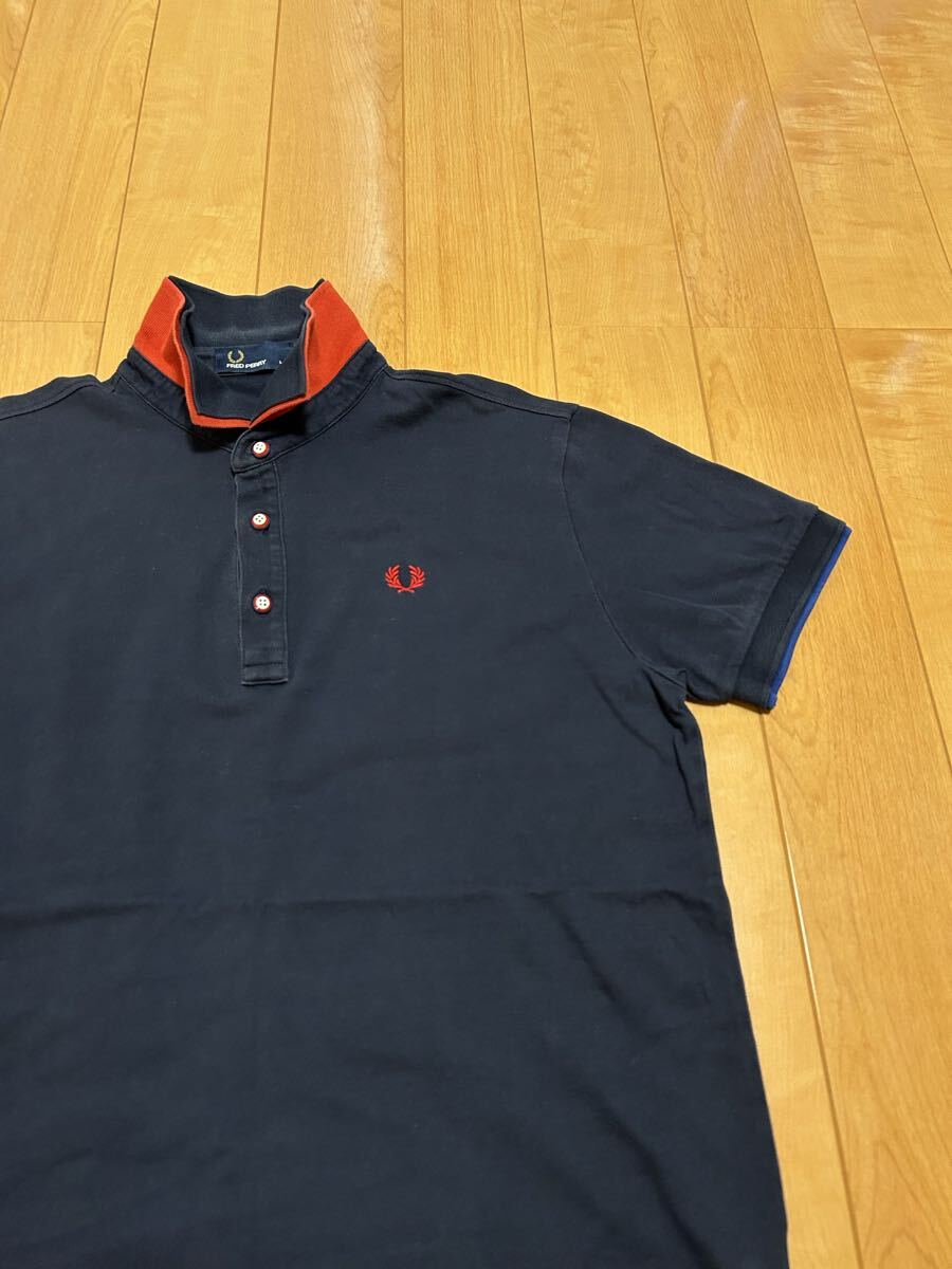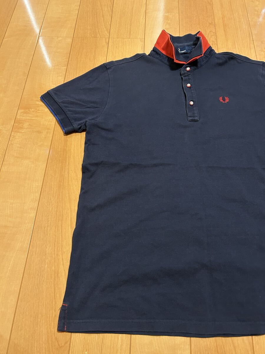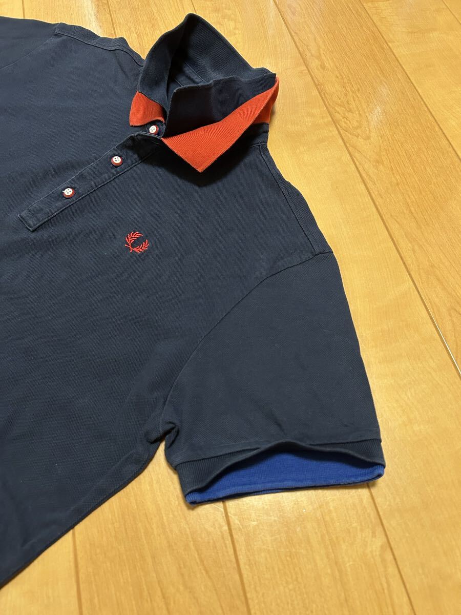 ヒットユニオン社製☆FRED PERRY・フレッドペリー メンズサイズL 半袖鹿の子ポロシャツ 希少.重ね着風レイヤード・襟2重&袖口ダブルリブ!