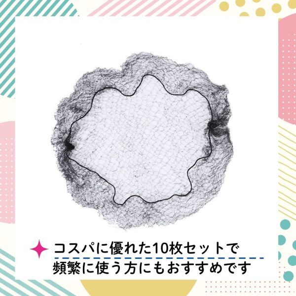 とても使いやすいヘアネット10枚セットです。高伸縮、高耐久力が特徴です。年令問わずご使用いただけます。