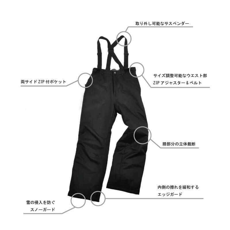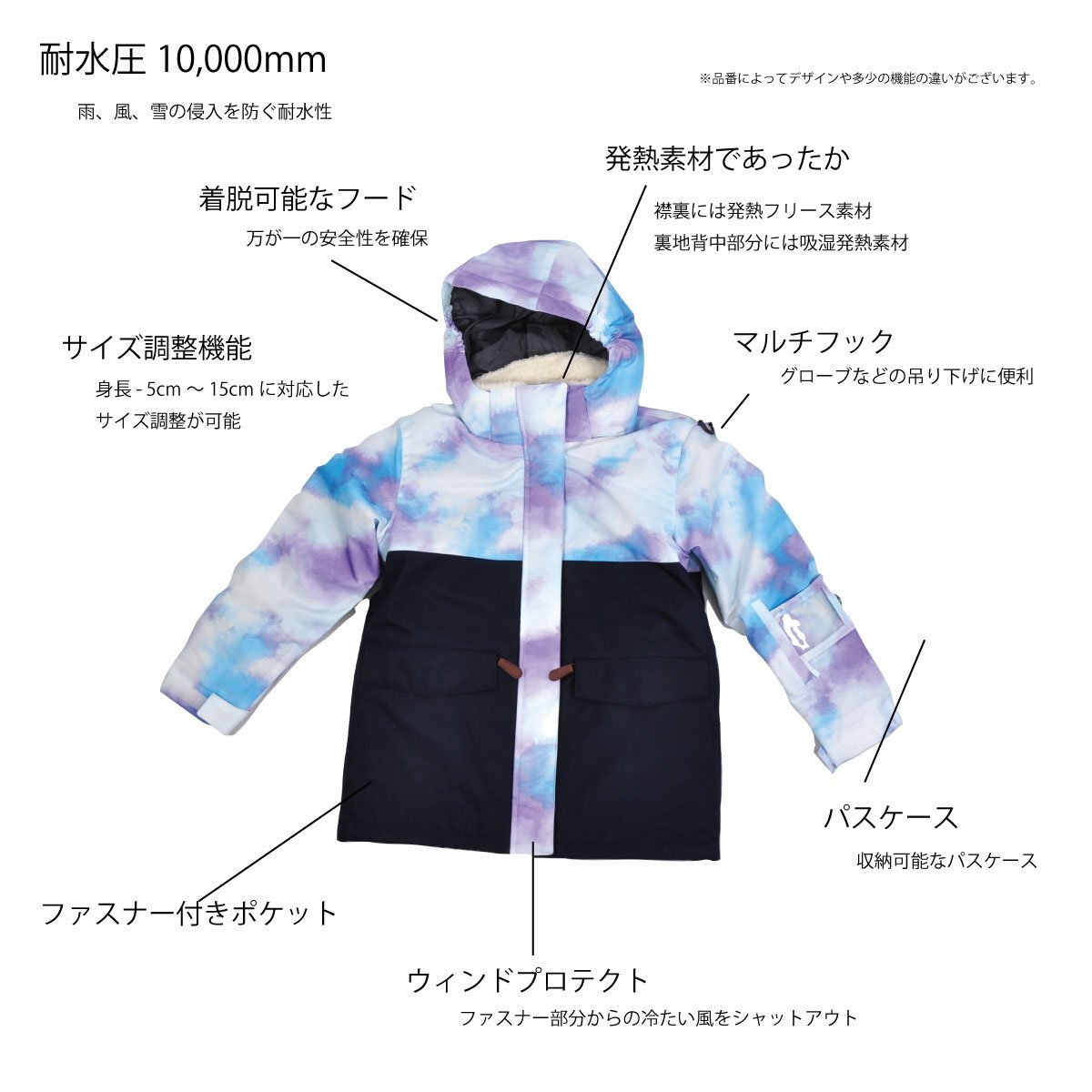 | 詳細 | 耐水圧10000mm ジャケット襟裏発熱・背当発熱素材 最大15cmのサイズ調整機能付・サスペンダー脱着式 ウエストフレックス・グローブ・チケットホルダー付 【カラー】 パープル ホワイト 【サイズ】 120cm / 130cm / 140cm / 150cm / 160cm |