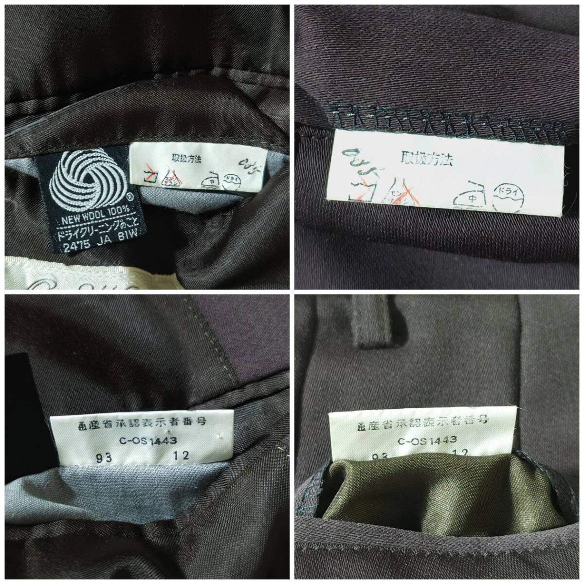 ※ 表記サイズはありませんが、寸法や着用感的にLから XL位と判断しています。ジャケットはL寄り、スラックスはX L位で、ウエスト周りは大きくそれ以上かなと思います。