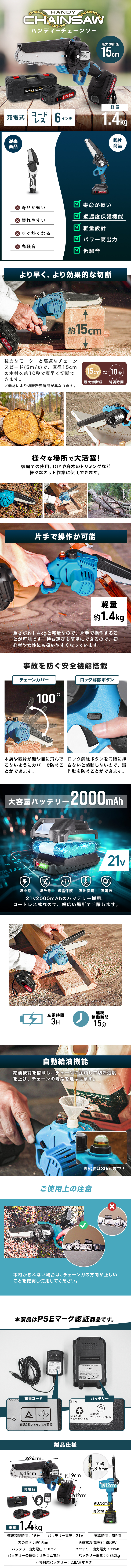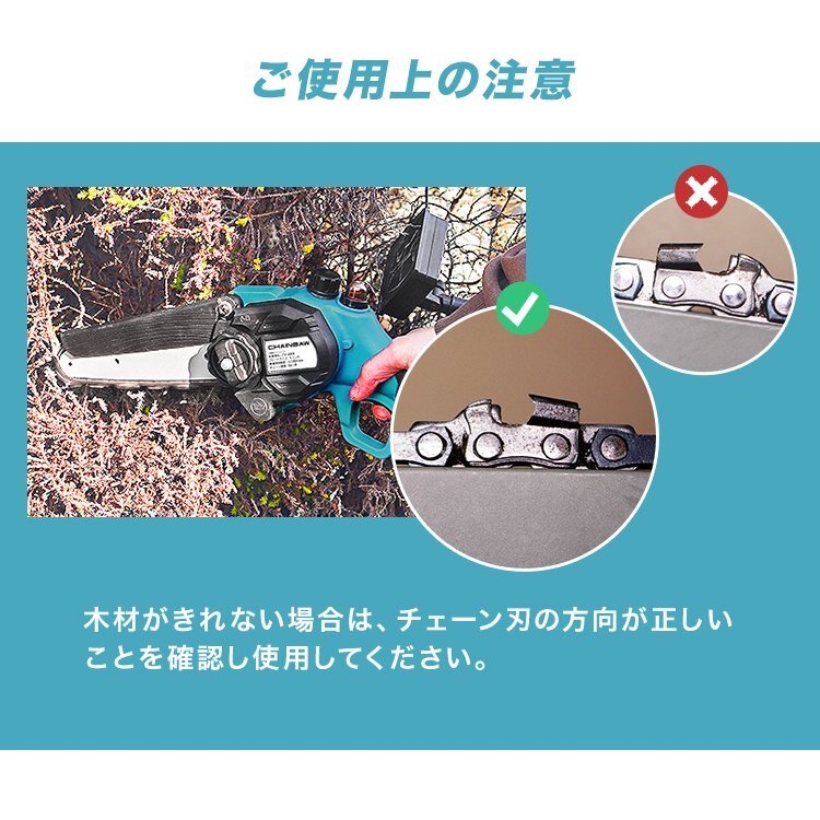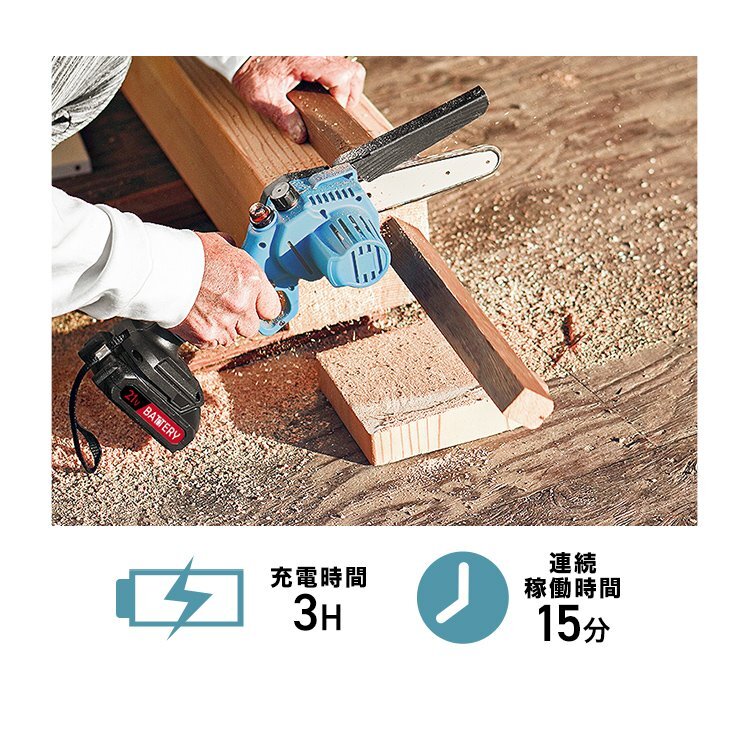 | 電源のない場所や屋外作業に最適な充電式チェーンソーです。