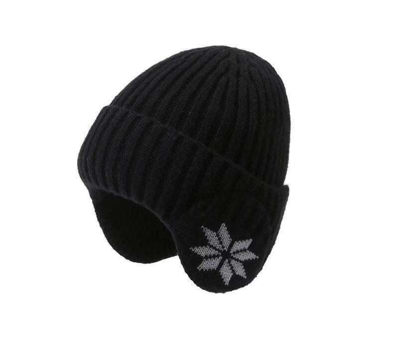 ニット帽 フリーサイズ メンズ レディース  耳あて  防寒帽子 キャップ   ブラック