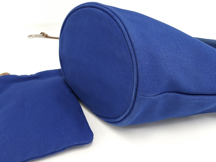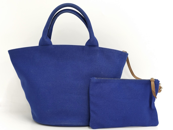 | ◆商品情報 | ・カラー:ブルー ・素材/ライン:キャンバス ・サイズ:最大約 W上42下22×H26×D17(cm) ・ポーチ:最大約 W24×H16(cm) ・ハンドル長さ:最大約36(cm) ※多少の誤差はご了承下さい。 ・内側:ファスナーポケット×1 |