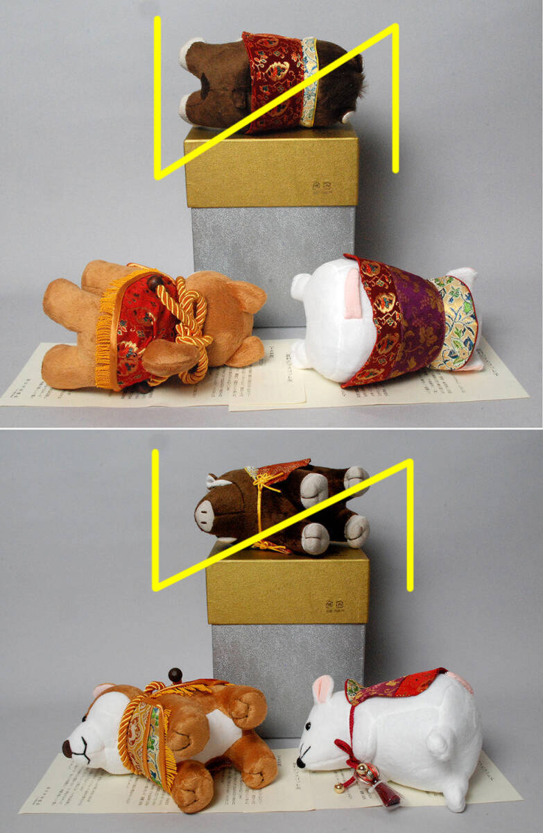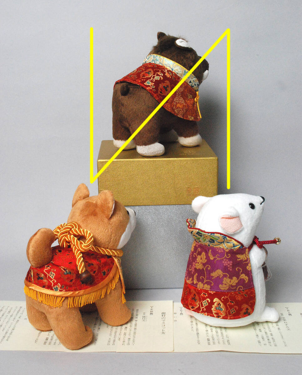 | ご覧頂きありがとうございます。 | 龍村美術織物の干支の犬(戊)、鼠(子)の縫ぐるみ人形2体の内から1体を!!」 |