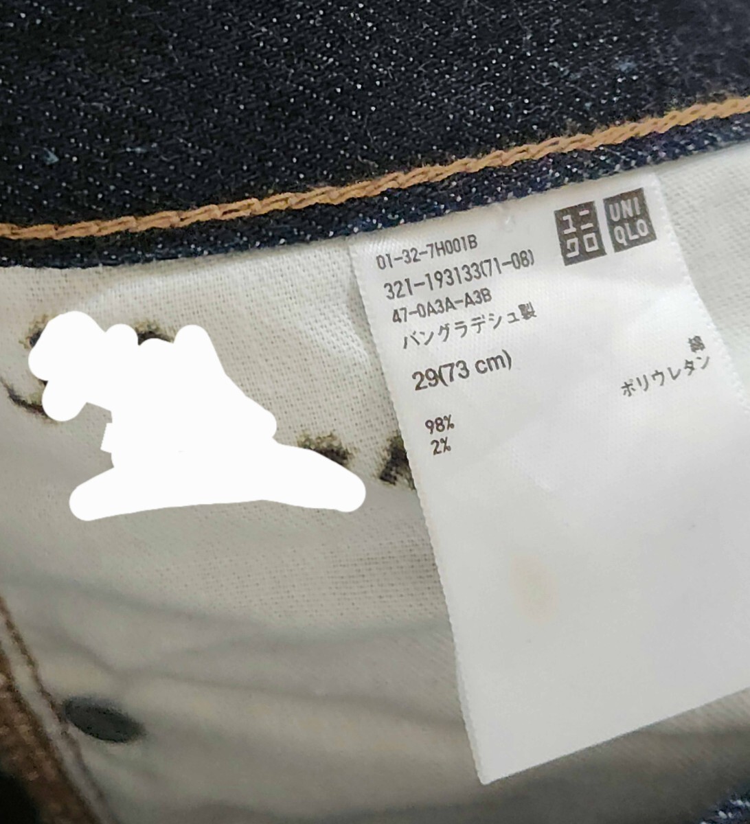 ユニクロ UNIQLO デニム セルビッジ 赤耳 スリムフィット ストレッチ 29 ジーンズ 濃紺 バングラデシュ製 メンズ 美品