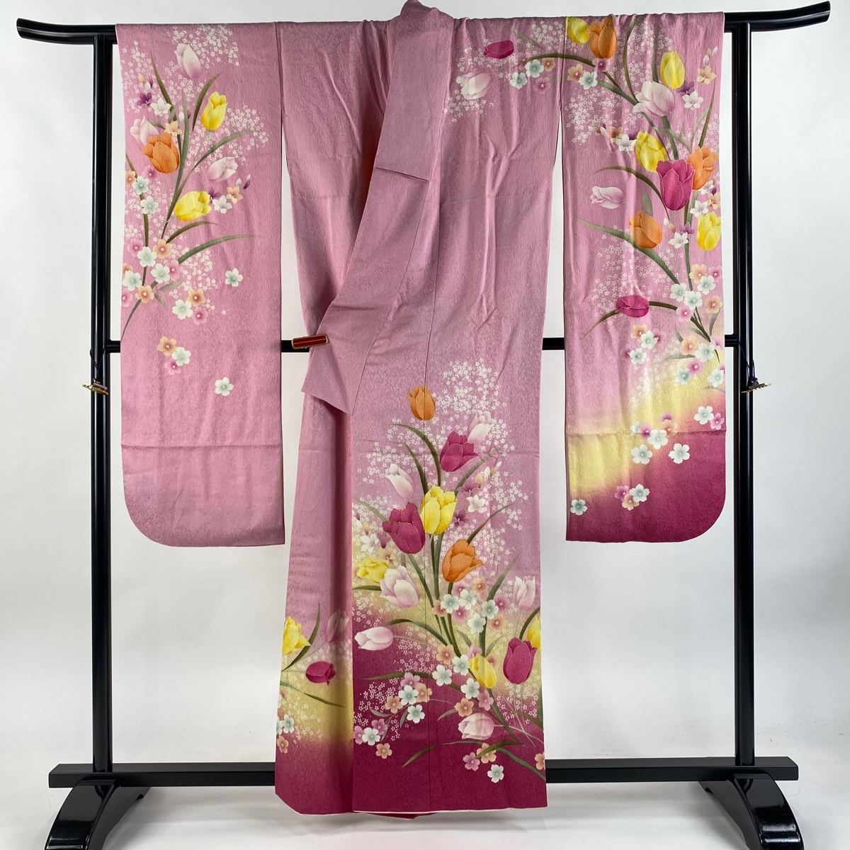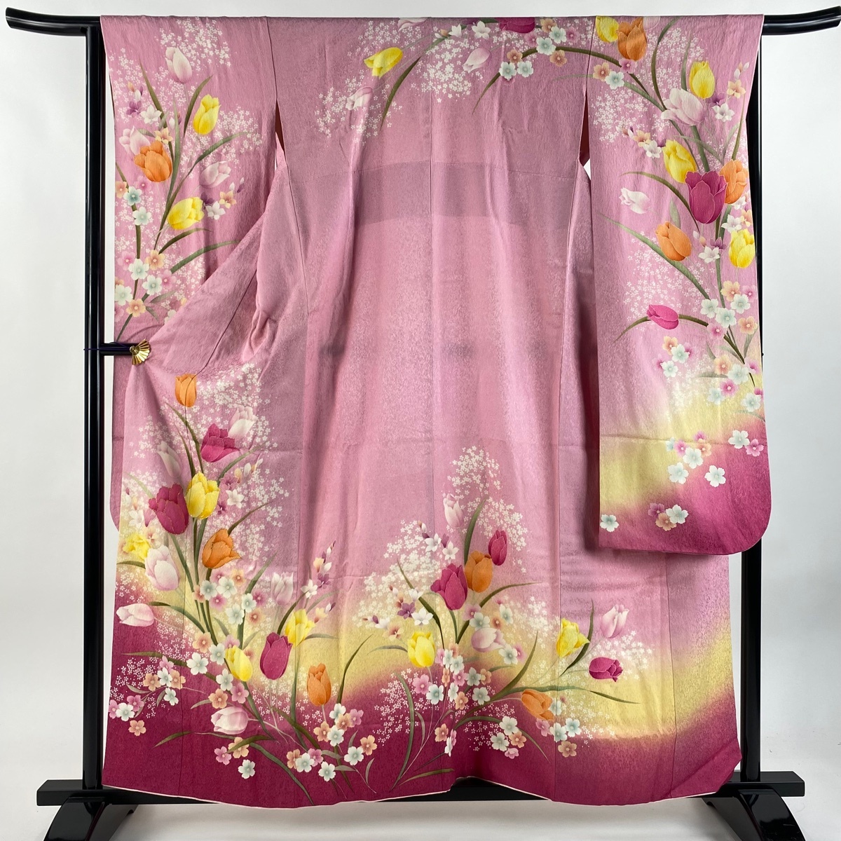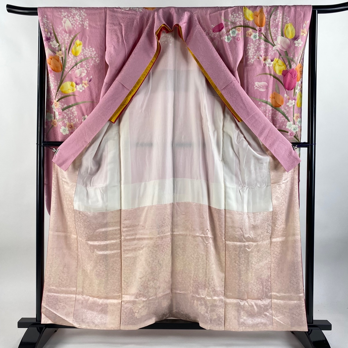 | 振袖 美品 逸品 チューリップ 草花 金通し ラメ ピンク 袷 身丈159 裄丈64.5 M 正絹 【中古】 |