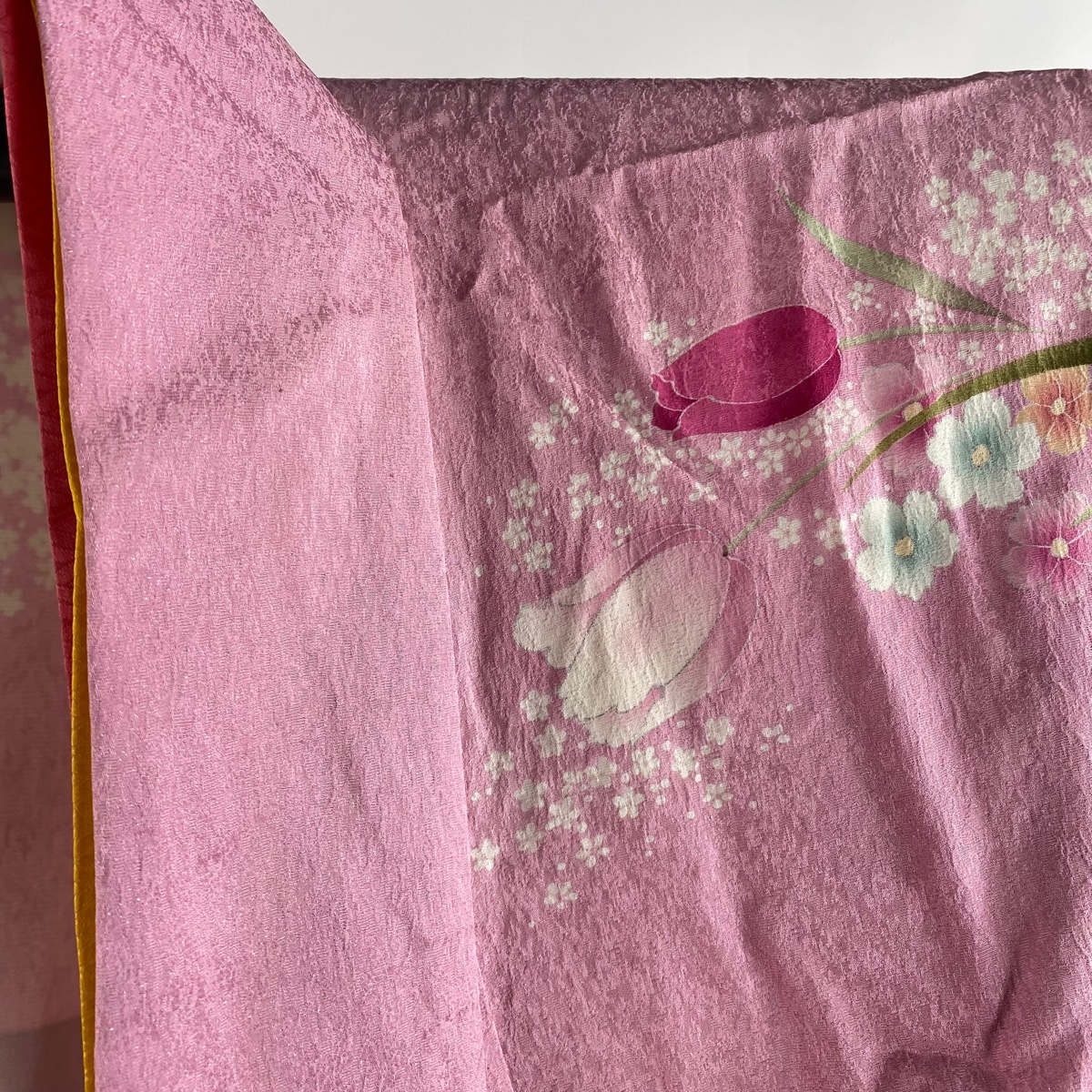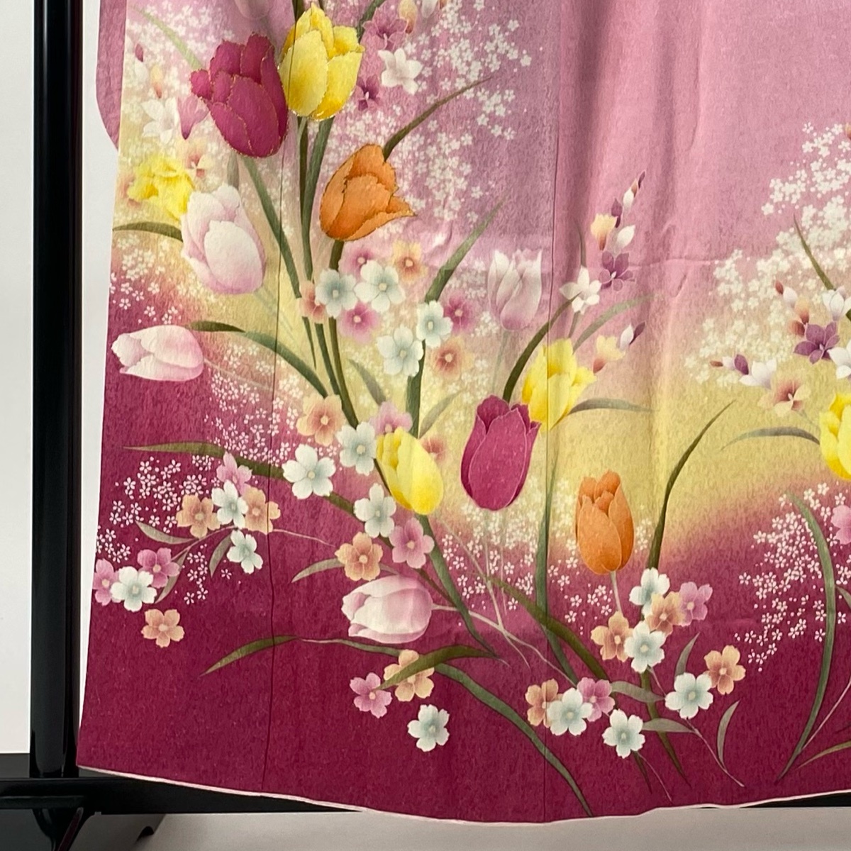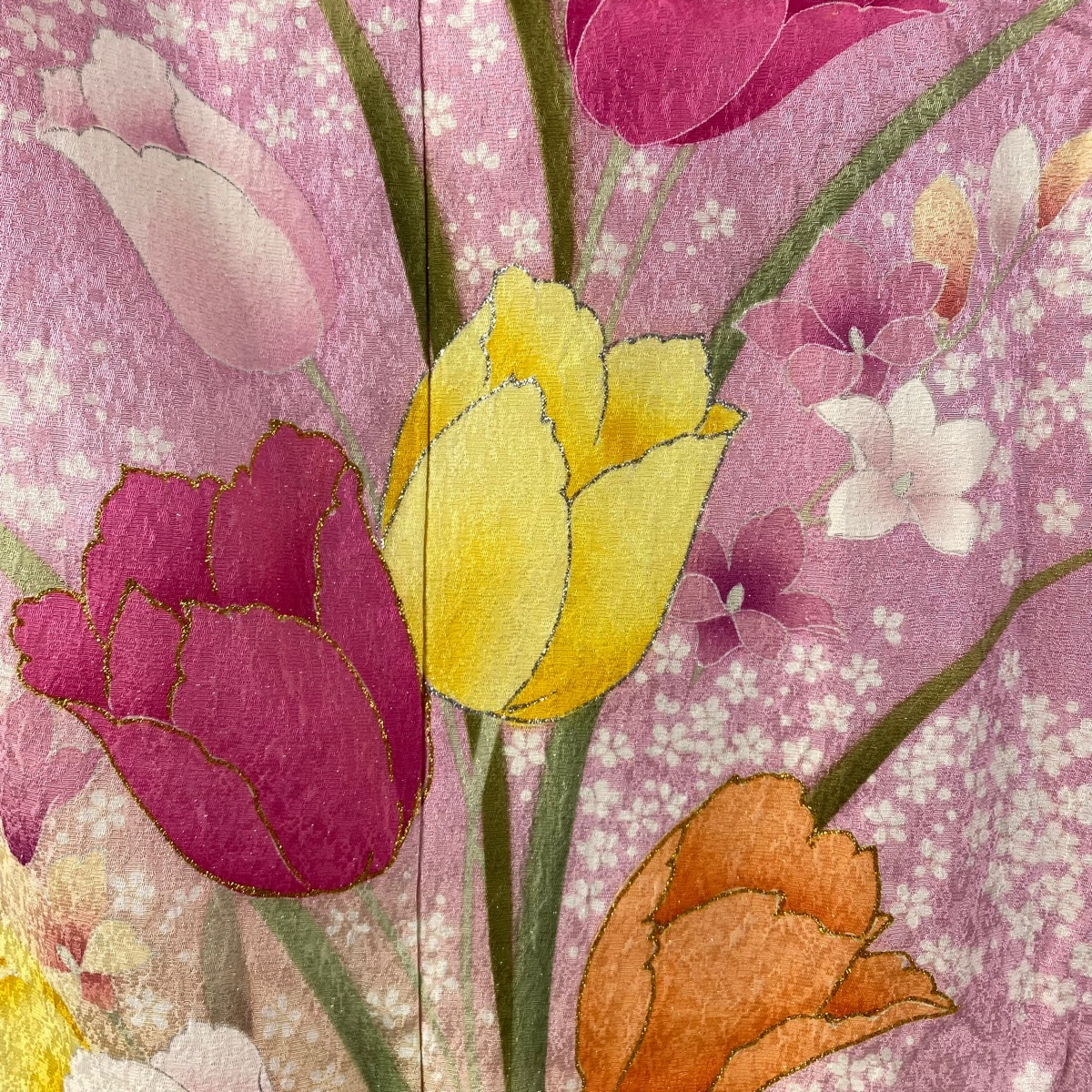 | 振袖 美品 逸品 チューリップ 草花 金通し ラメ ピンク 袷 身丈159 裄丈64.5 M 正絹 【中古】 |