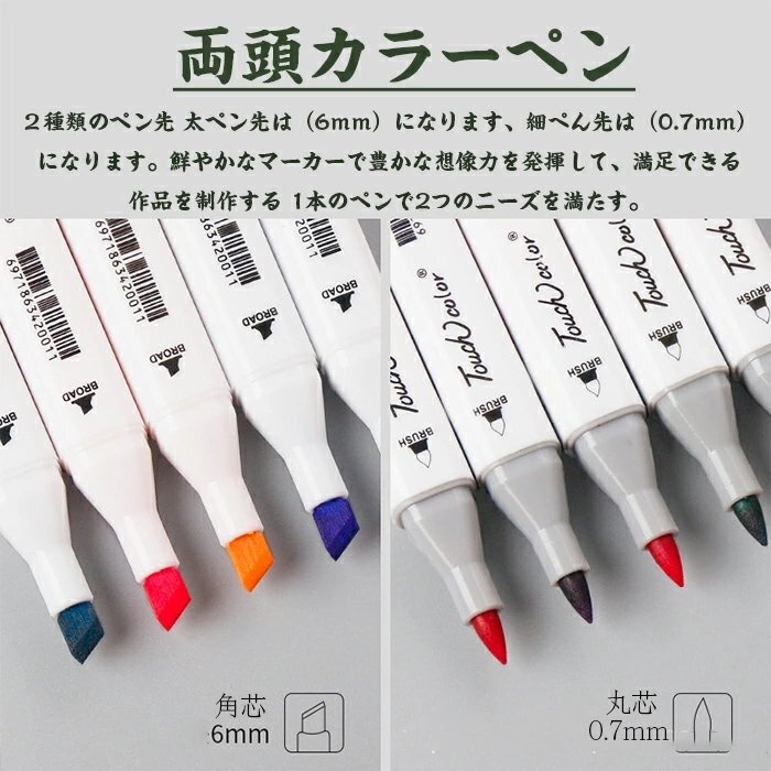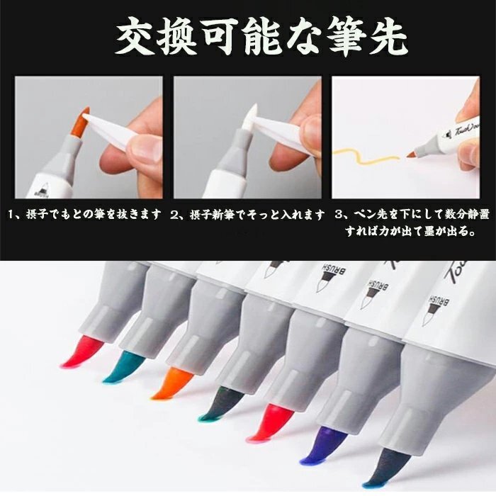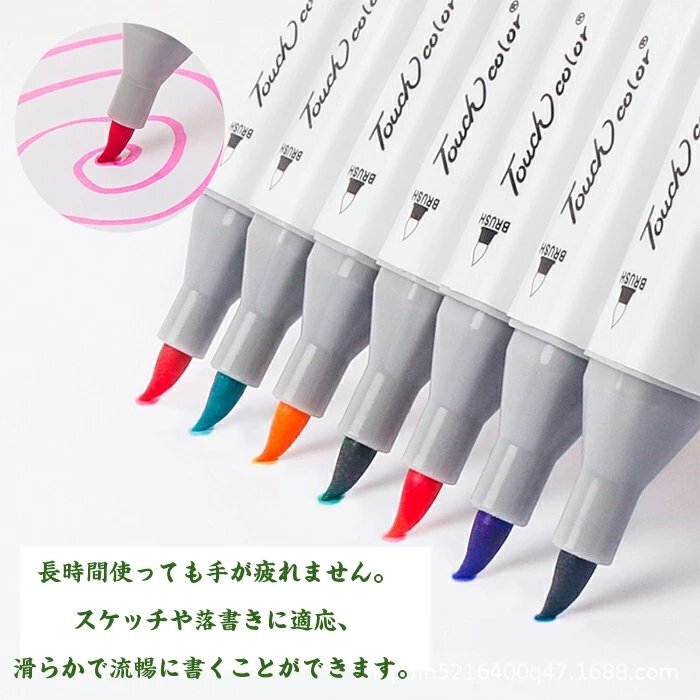 【使いやすい】 柄は人間工学に基づいて作られている四角型のデザインで握りやすいし、滑らかに書くことができます。長時間使っても手が疲れません。アルコール系のインクなので、イヤなにおいもしません。耐水性に優れて色褪せしにくく、インクはすぐに乾燥できるので、手が汚れません。色番号はキャップにはっきり表示されていて、必要な色は迅速に見つけることができます。