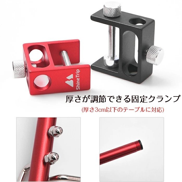 【クランプ式】クランプ式の場合は様々なテーブルに対応しています(厚さ3cm以下のテーブルに対応)