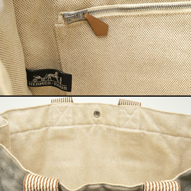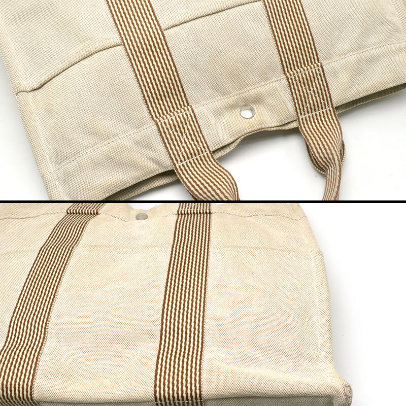 【外側】四つ角のスレや破れ(貫通はしていません)、全体的に汚れ、エルメスタグにスレ、開口部角にスレや多少のホツレあり