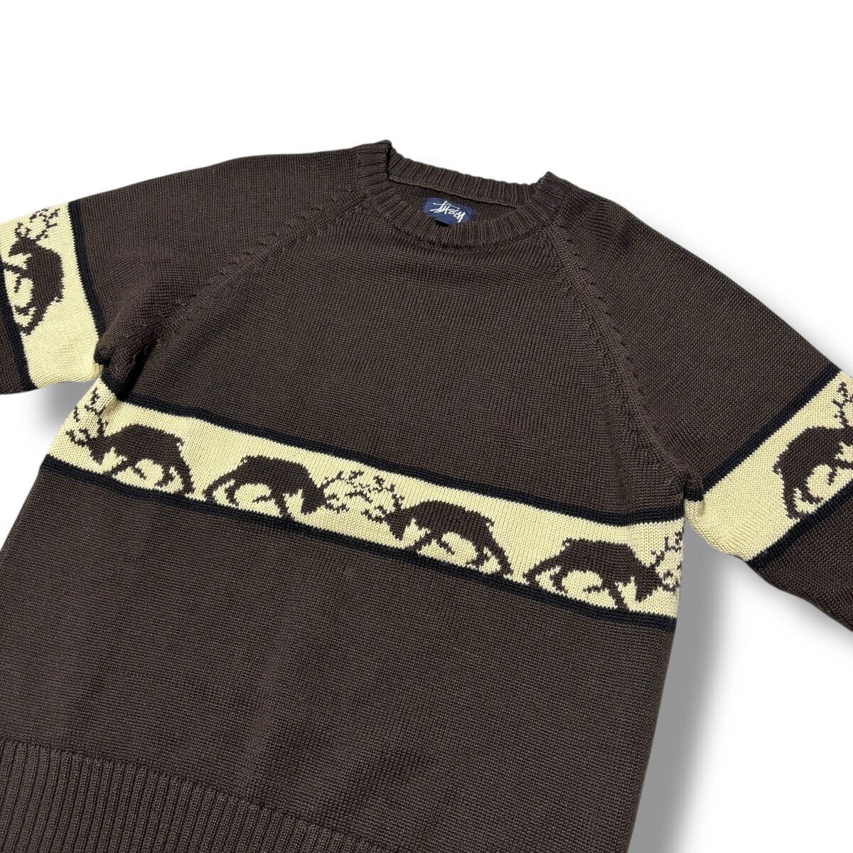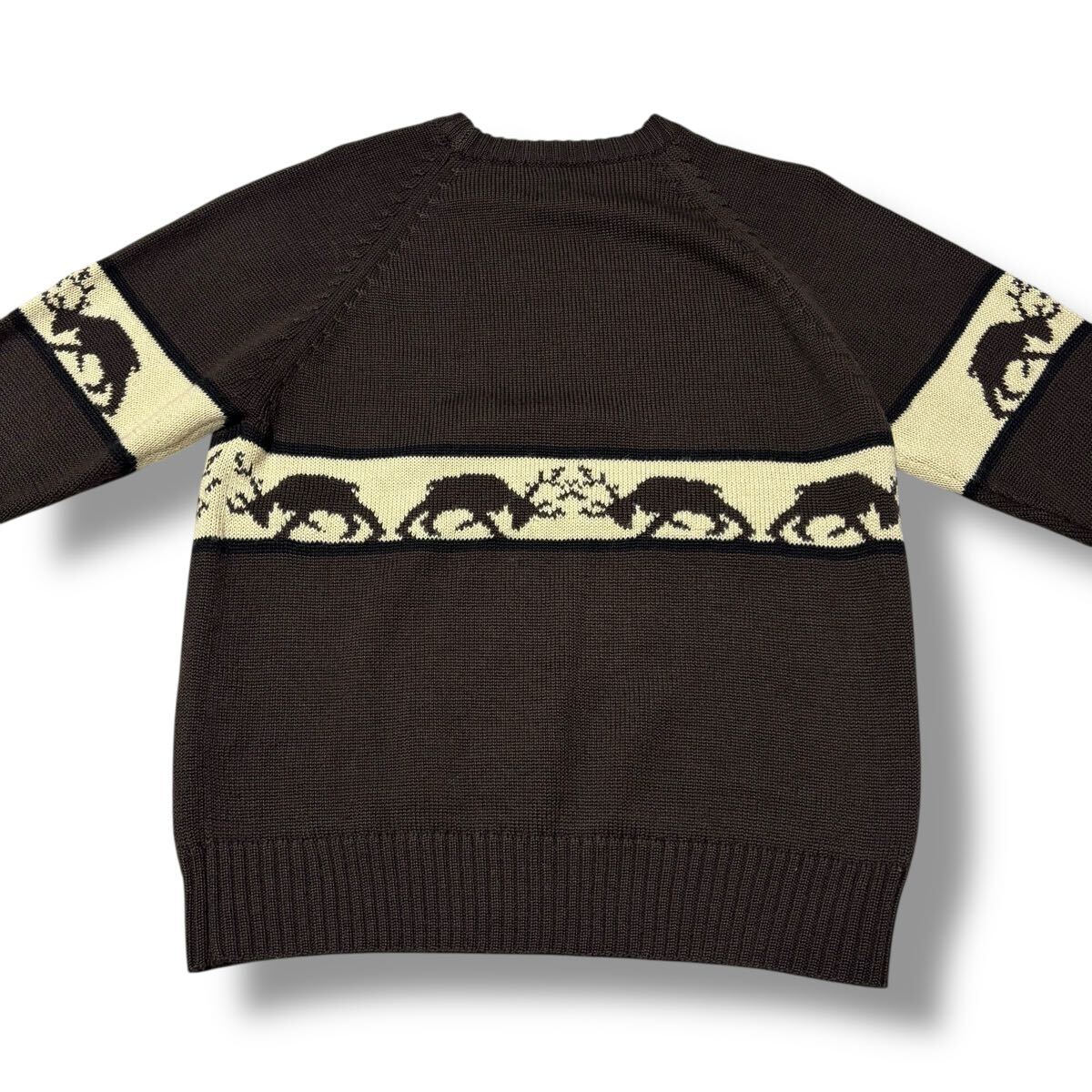 90sのレトロな雰囲気のノルディック柄、アニマル柄が印象的なデザインです。着心地の良いセットインスリーブと程良くゆとりのあるシルエットが◎。