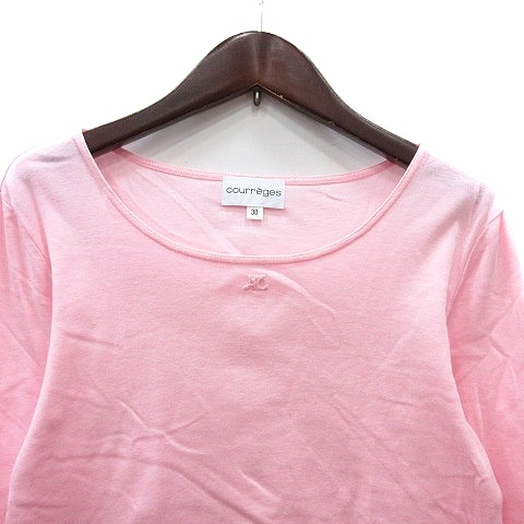 クレージュ courreges カットソー クルーネック 刺繍 七分袖 38 M ピンク /MN レディース