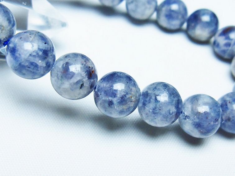 ■商品名: アイオライトブレスレット ■商品ID: T383-4873 ■商品重量:約 27.4g ■商品サイズ:内周約:165mm(±5mm)粒直径約:10mm(±0.5mm) 【アイオライト(菫青石)】 正式な鉱物名を「コーディエライト」といいます。 アイオライトという通称はギリシャ語ですみれ色を意味する「ion」から名付けられ、和名では菫青石(きんせいせき)と呼ばれます。名前通りの美しいすみれ色が特徴ですが、アイオライトは多色性の性質を持ち合わせています。 見る角度や光の当たり方によって変わる紫色や青色、青みがかった灰色や薄黄色などのシックで独特な色合いはアイオライト最大の魅力といえるでしょう。 この多色性を活用して大昔には羅針盤として用いられていたことから、アイオライトは「導きの石」として視野を広げたり新しい一歩を踏み出すための判断力と決断力をもたらすといわれています。 恋愛面においても迷いが生じたときに現状を打開する勇気を与えて一途で深い愛情をもたらすとされ、結婚や恋人との生活で心強いサポートが得られそうです。 ⇒ アイオライトをもっと詳しく ◆ワンポイント情報 アイオライトのなかには雲母に変質し、断面が桜の花のような模様をした桜石と呼ばれるものも存在します。京都府亀岡市で発見された桜石は稗田野菫青石結晶として国の天然記念物に指定されています。 |