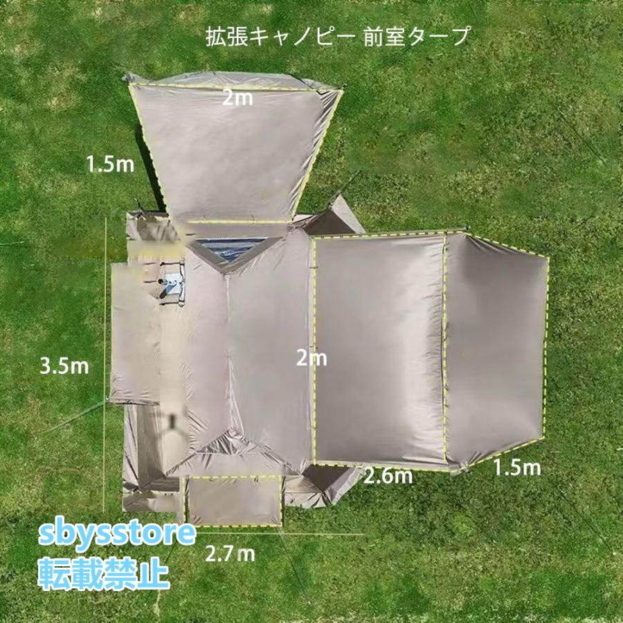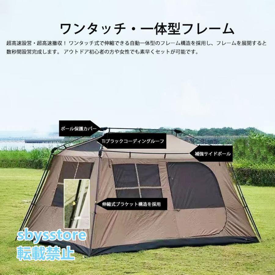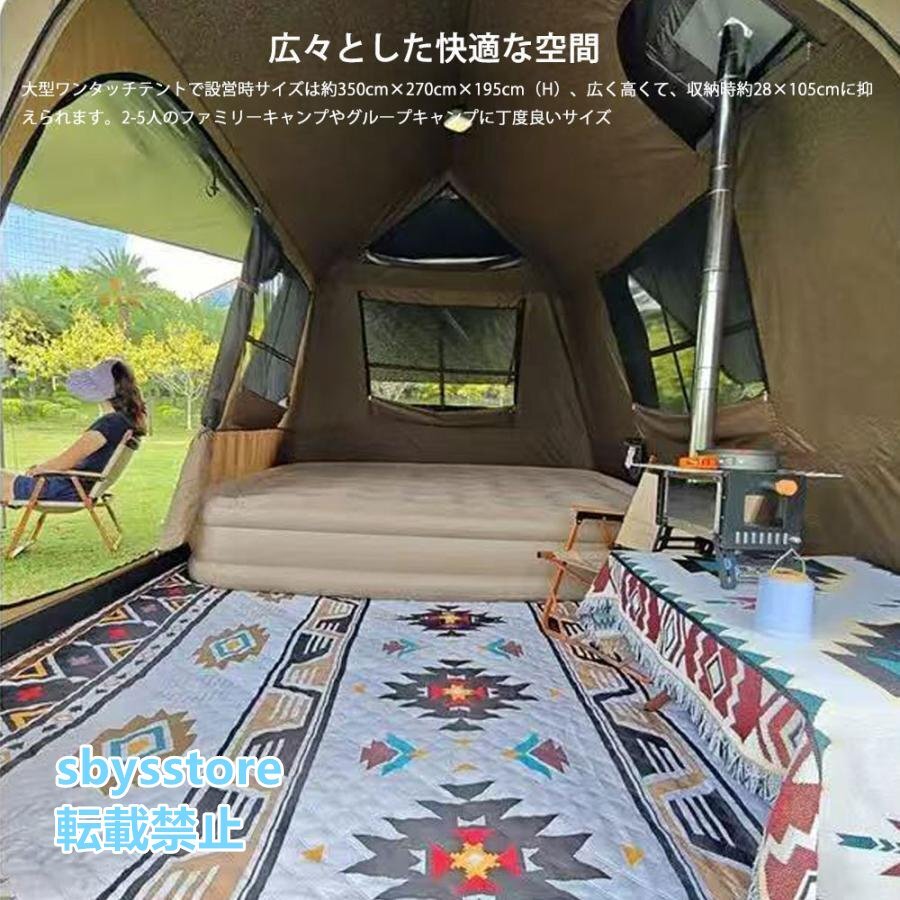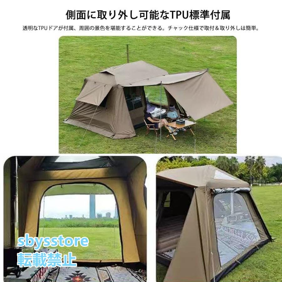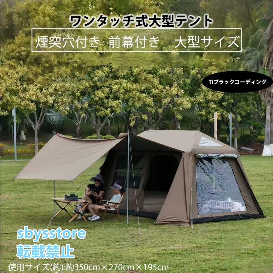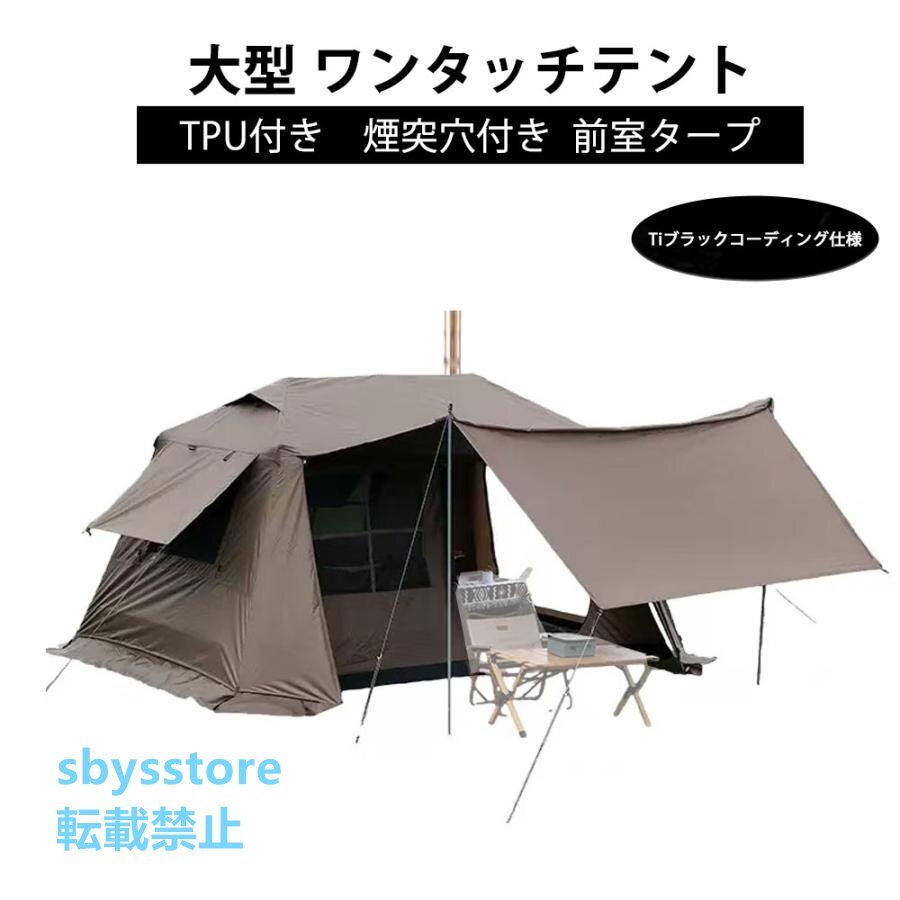 大型 ワンタッチテント ロッジ型テント Tiブラックコーディング 拡張キャノピー 前室タープ 煙突穴付き 収納袋付き 2-6人用 キャンプ