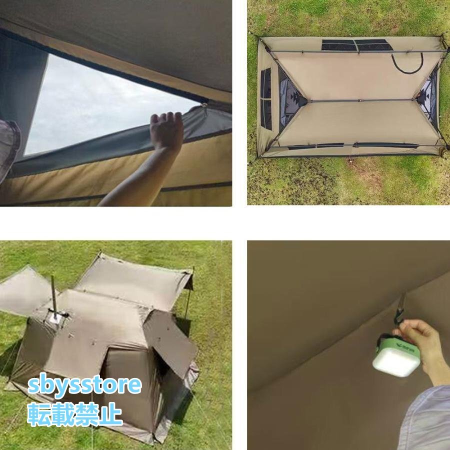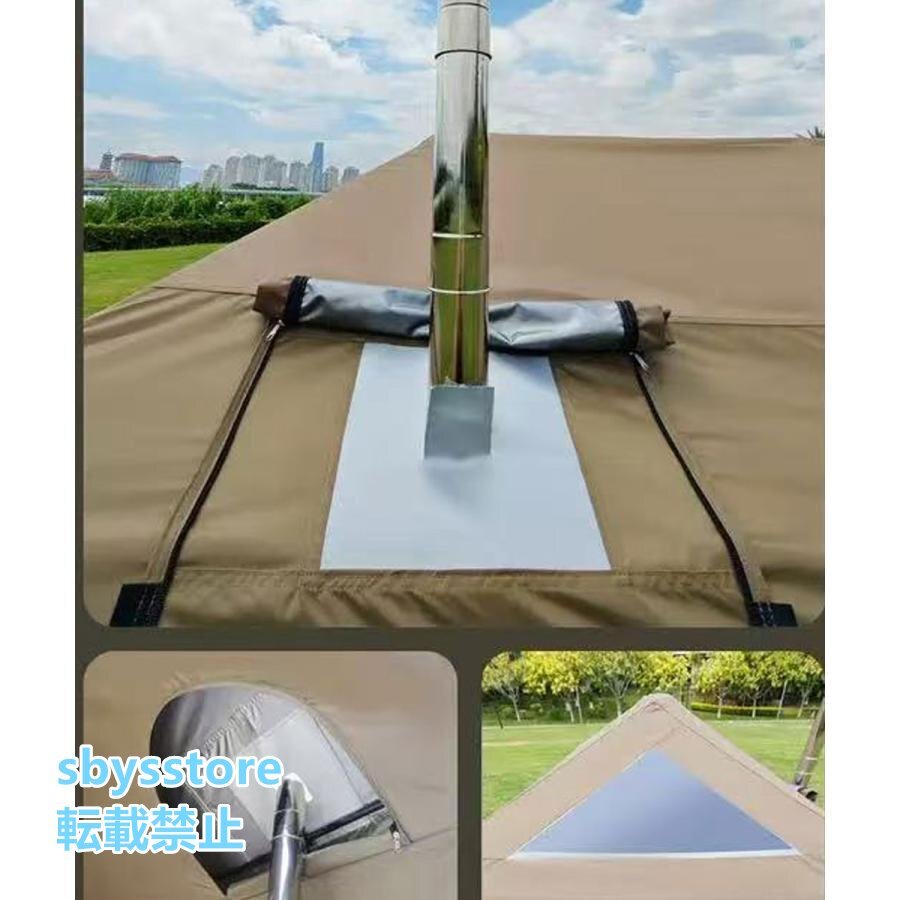 煙突穴が付いており、寒い日に薪ストーブを使え、冬のキャンプを暖かく過ごせます。オールシーズンに適用する。