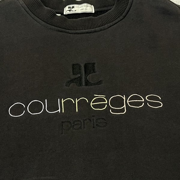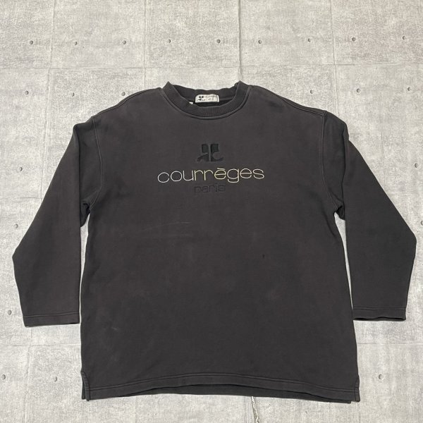 courreges and co スウェット デカロゴ クレージュ アンド コー  ロゴ刺繍 トレーナー ビッグロゴ 裏起毛 フェード サイドスリット YL2515 courreges parisロゴ 色褪せ ブラック 黒