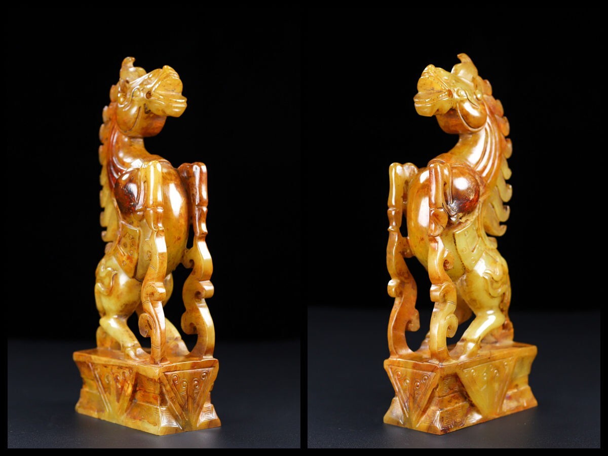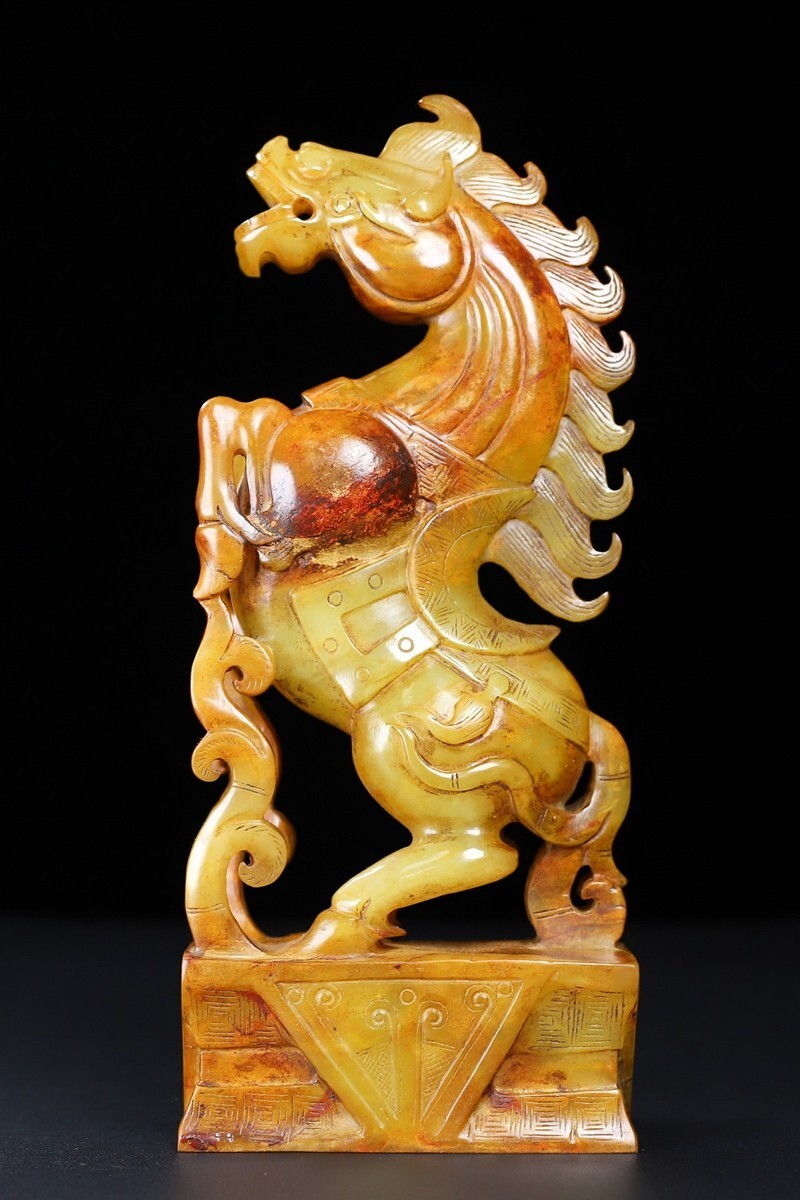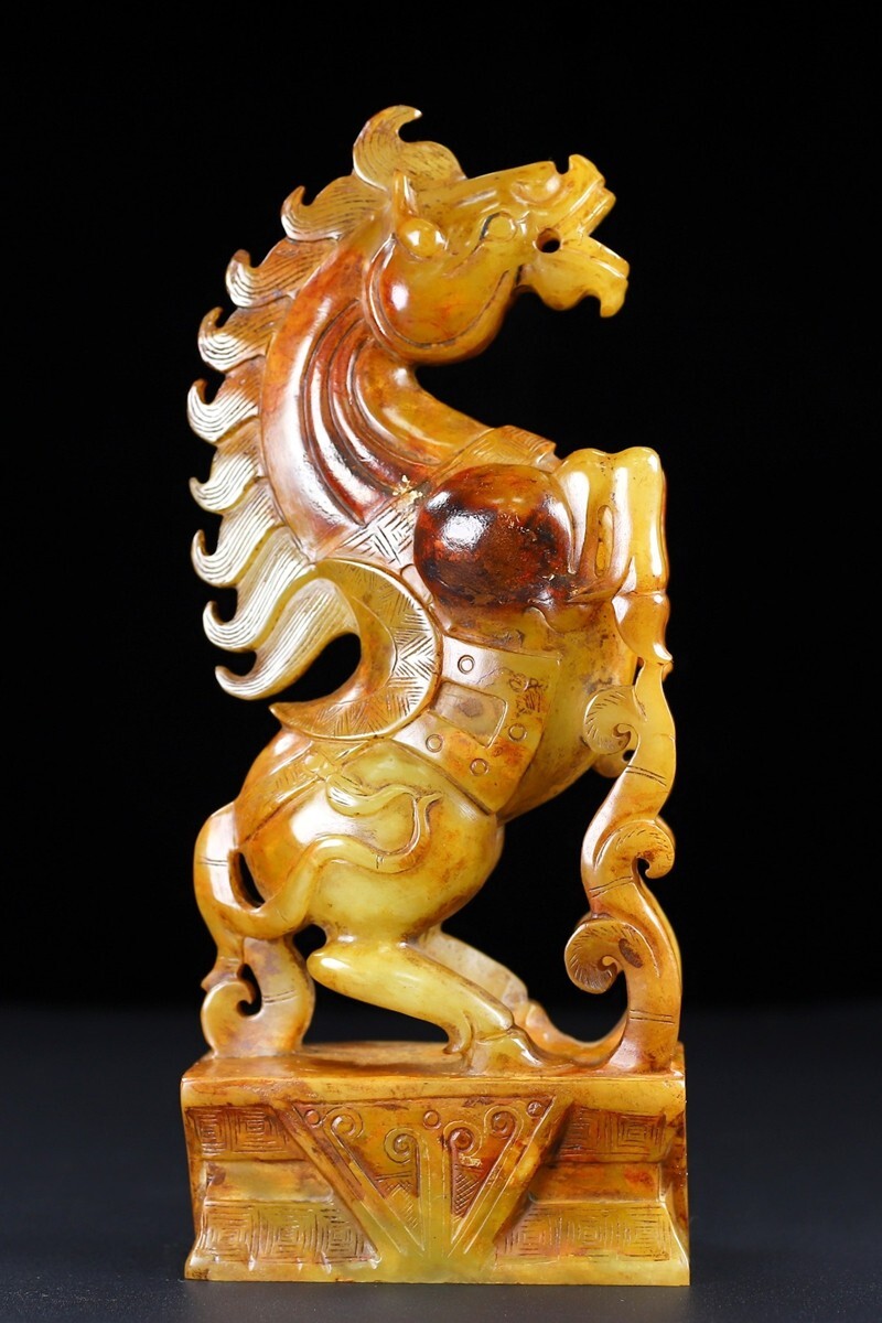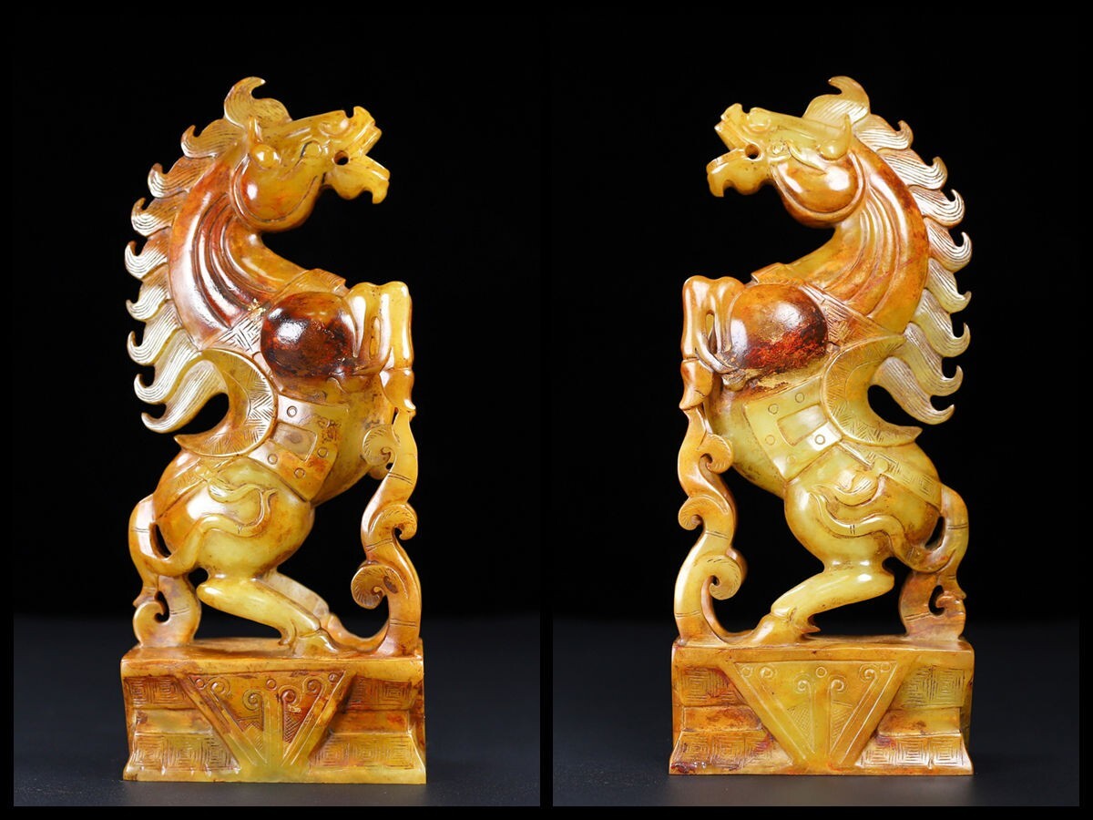 「戦國時期 和田玉 高古玉彫り 馬 印章 印璽」極細工 擺件 中国古賞物 古美術 旧蔵出