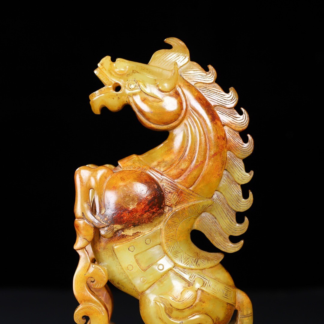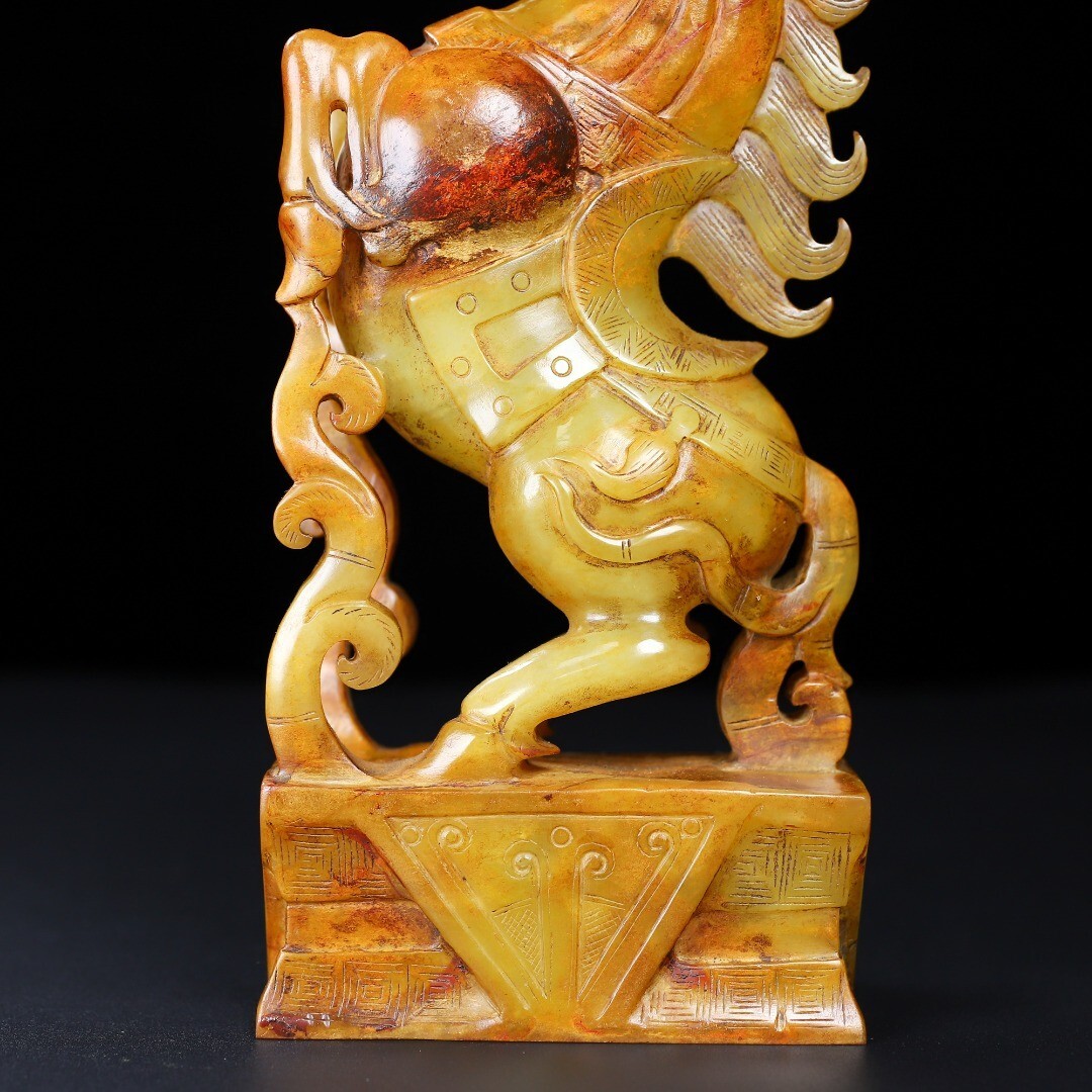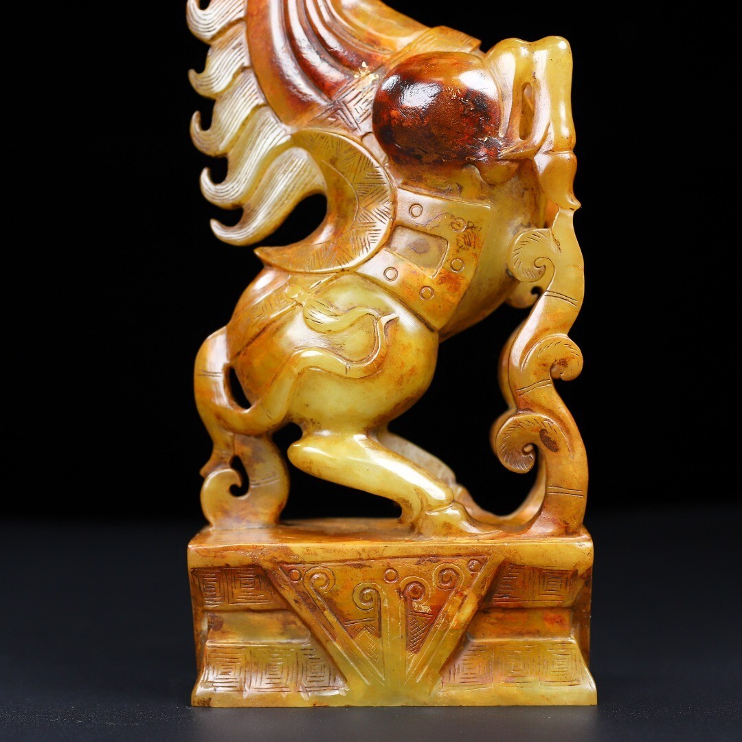 「戦國時期 和田玉 高古玉彫り 馬 印章 印璽」極細工 擺件 中国古賞物 古美術 旧蔵出